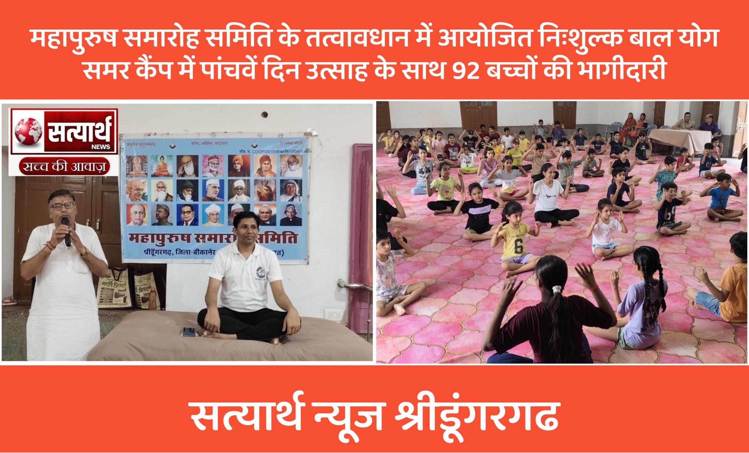 सत्यार्थ न्यूज श्रीडूंगरगढ़-सवांददाता ब्यूरो चीफ महापुरुष समारोह समिति श्रीडूंगरगढ़ के तत्वावधान में बच्चों हेतु बाल योग समर कैंप में पांचवें…