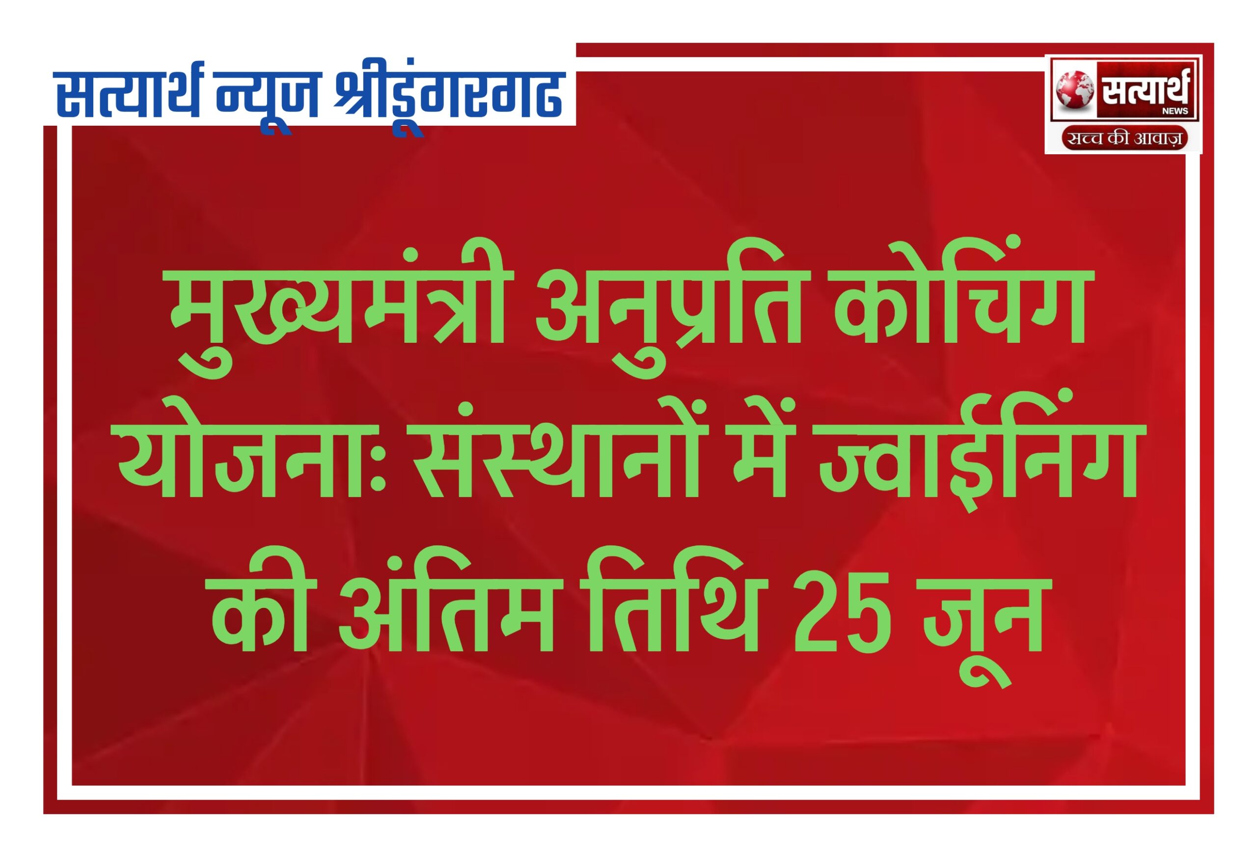 सत्यार्थ न्यूज श्रीडूंगरगढ़-सवांददाता ब्यूरो चीफ मुख्यमंत्री अनुप्रति कोचिंग योजनान्तर्गत सत्र 2024-25 के लिए जारी तृतीय मुख्य मेरिट सूची में चयनित…