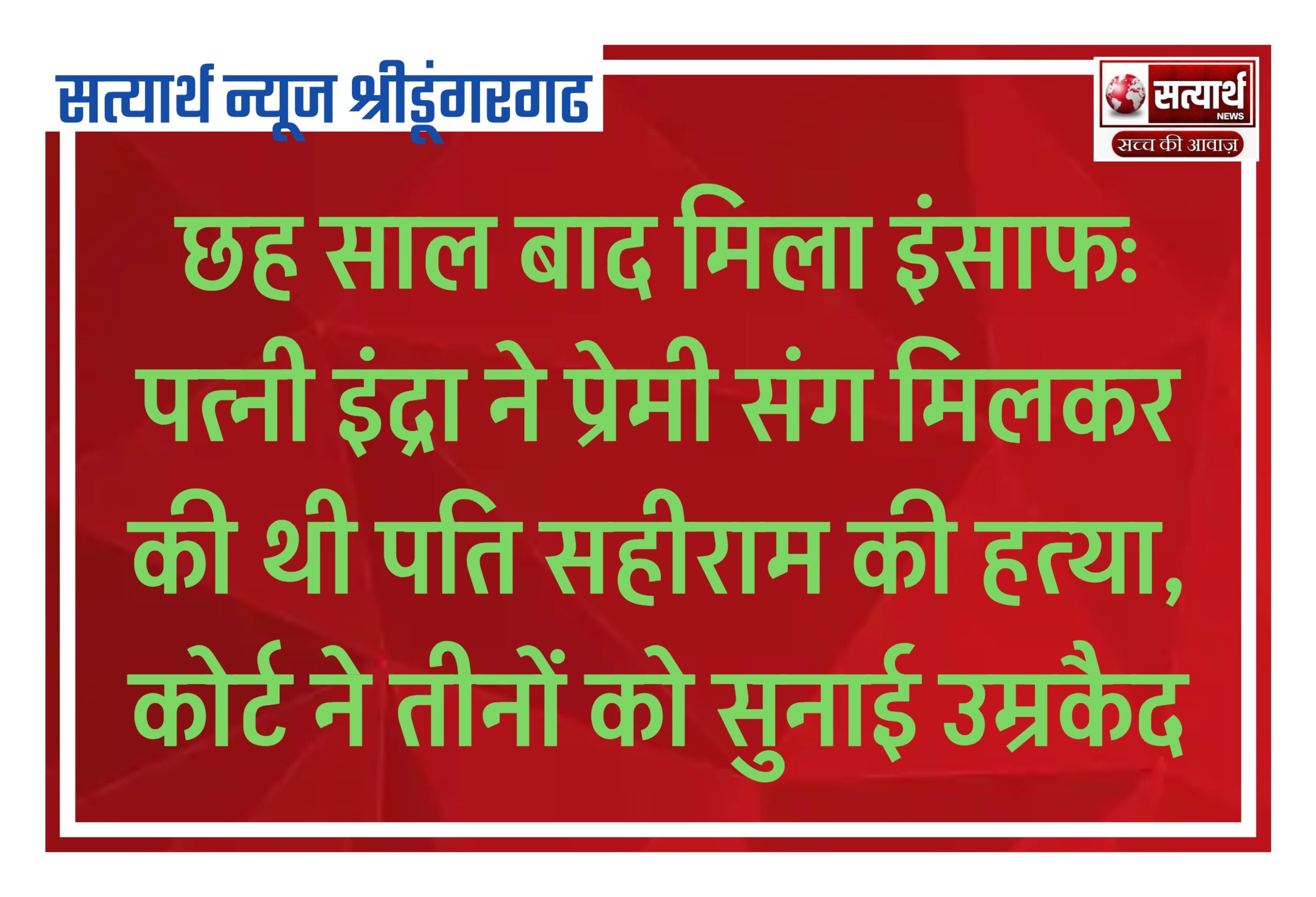 सत्यार्थ न्यूज श्रीडूंगरगढ़-सवांददाता ब्यूरो चीफ श्रीडूंगरगढ़ रेलवे ट्रैक पर लगभग छह साल पहले मृत पाए गए सहीराम हत्या मामले में…