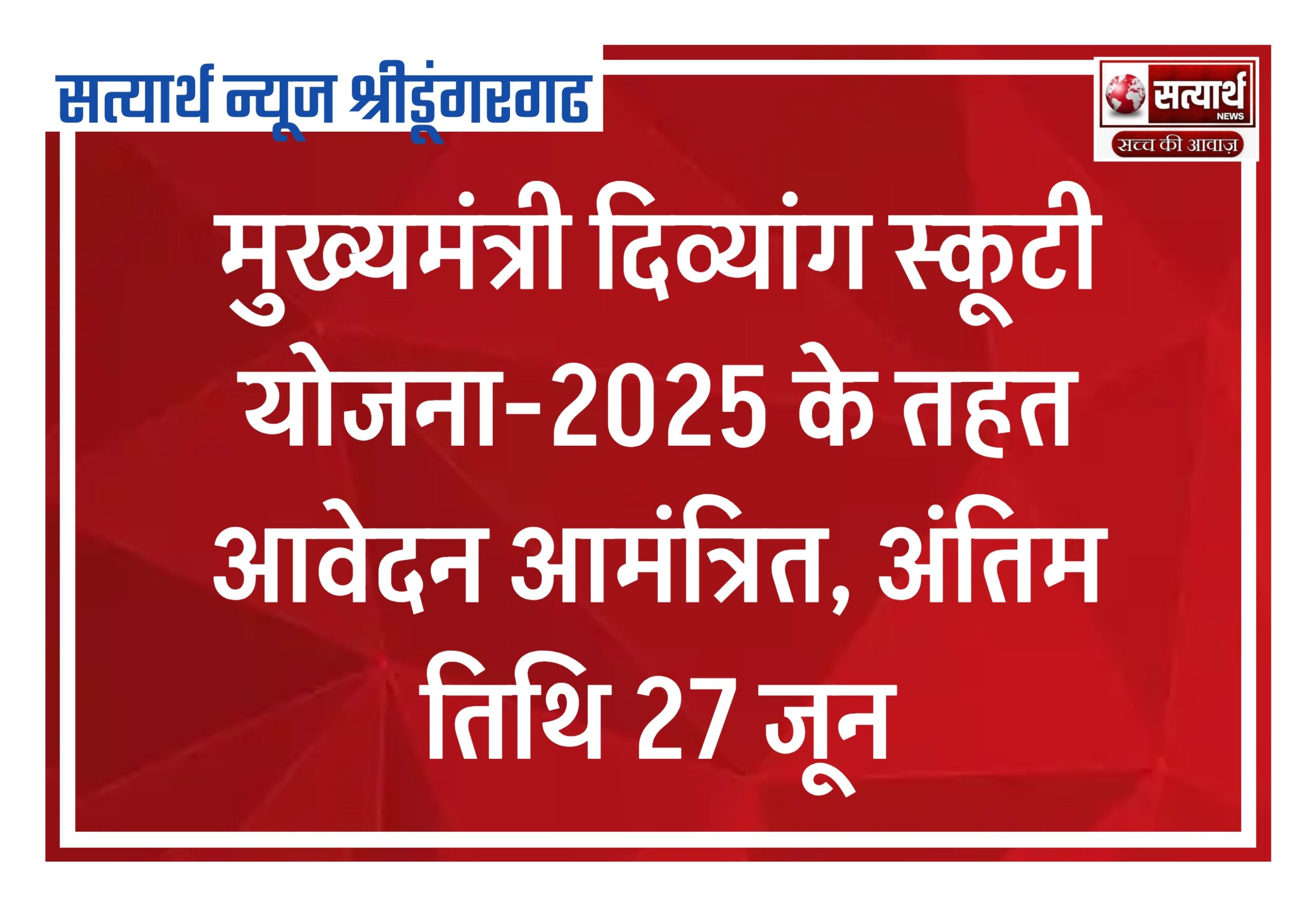 सत्यार्थ न्यूज श्रीडूंगरगढ़-सवांददाता ब्यूरो चीफ राजस्थान सरकार की बजट घोषणा में मुख्यमंत्री दिव्यांग स्कूटी योजना वर्ष 2025 के लिए दिव्यांगजनों…