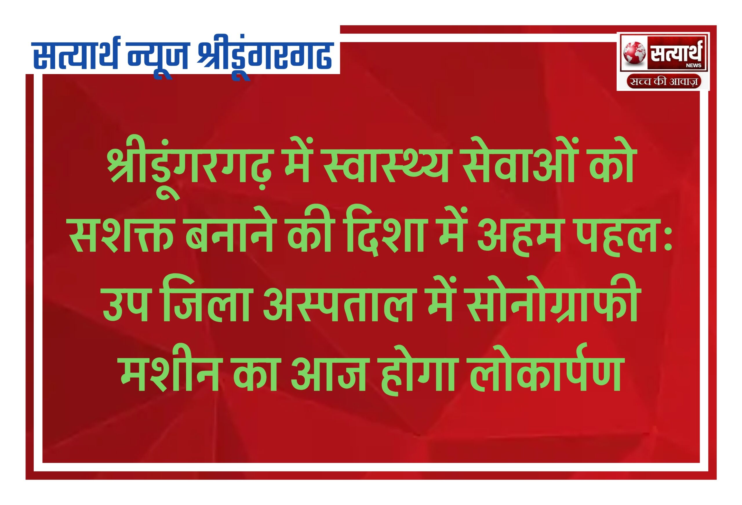 सत्यार्थ न्यूज श्रीडूंगरगढ़- सवांददाता ब्यूरो चीफ श्रीडूंगरगढ़ क्षेत्र की स्वास्थ्य सुविधाओं को सुदृढ़ बनाने की दिशा में एक महत्वपूर्ण पहल…