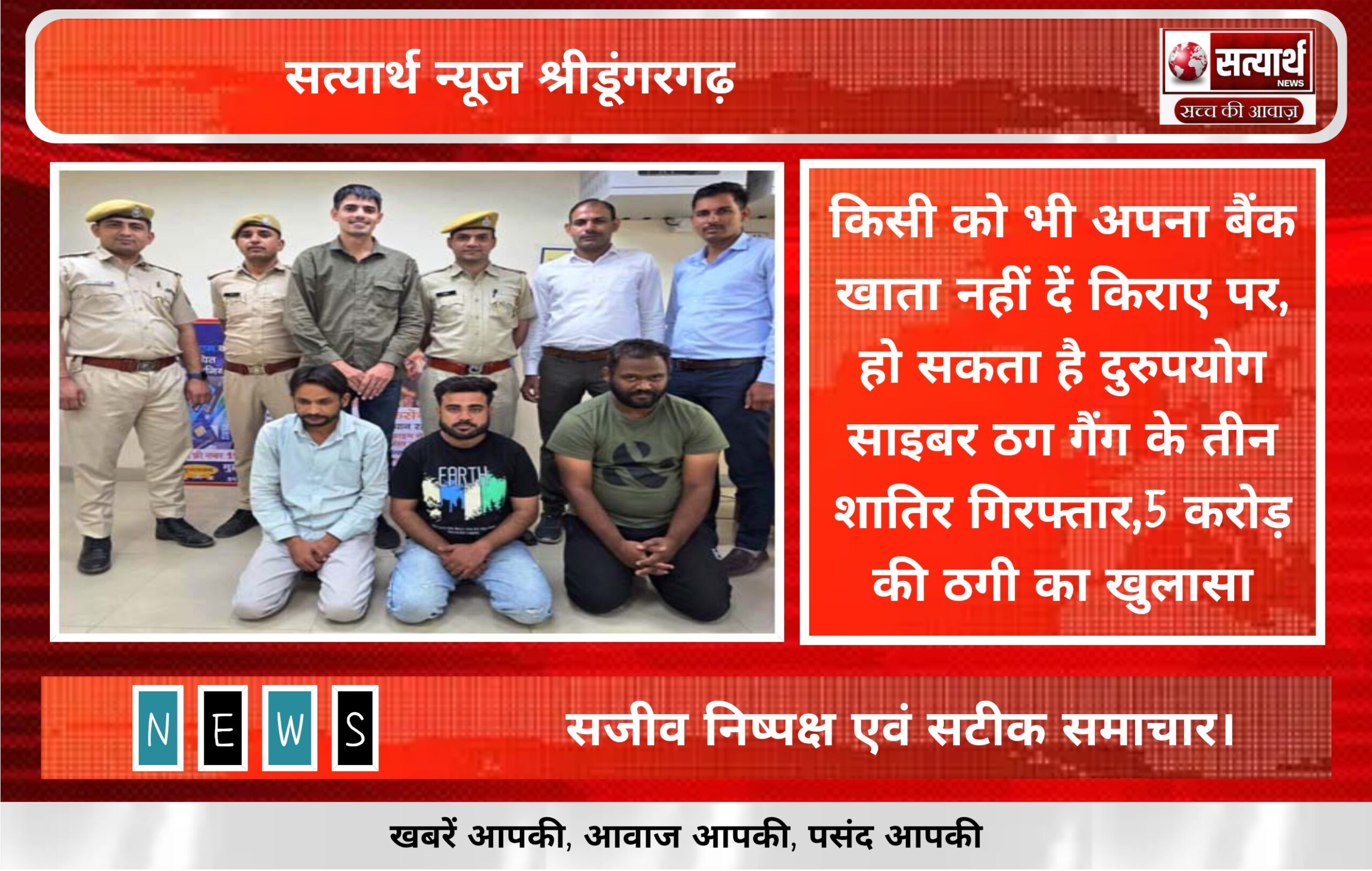 सत्यार्थ न्यूज श्रीडूंगरगढ़-सवांददाता ब्यूरो चीफ बीकानेर में पुलिस ने अंतरराज्यीय साइबर ठग गैंग का पर्दाफाश किया है। पुलिस ने गैंग…
