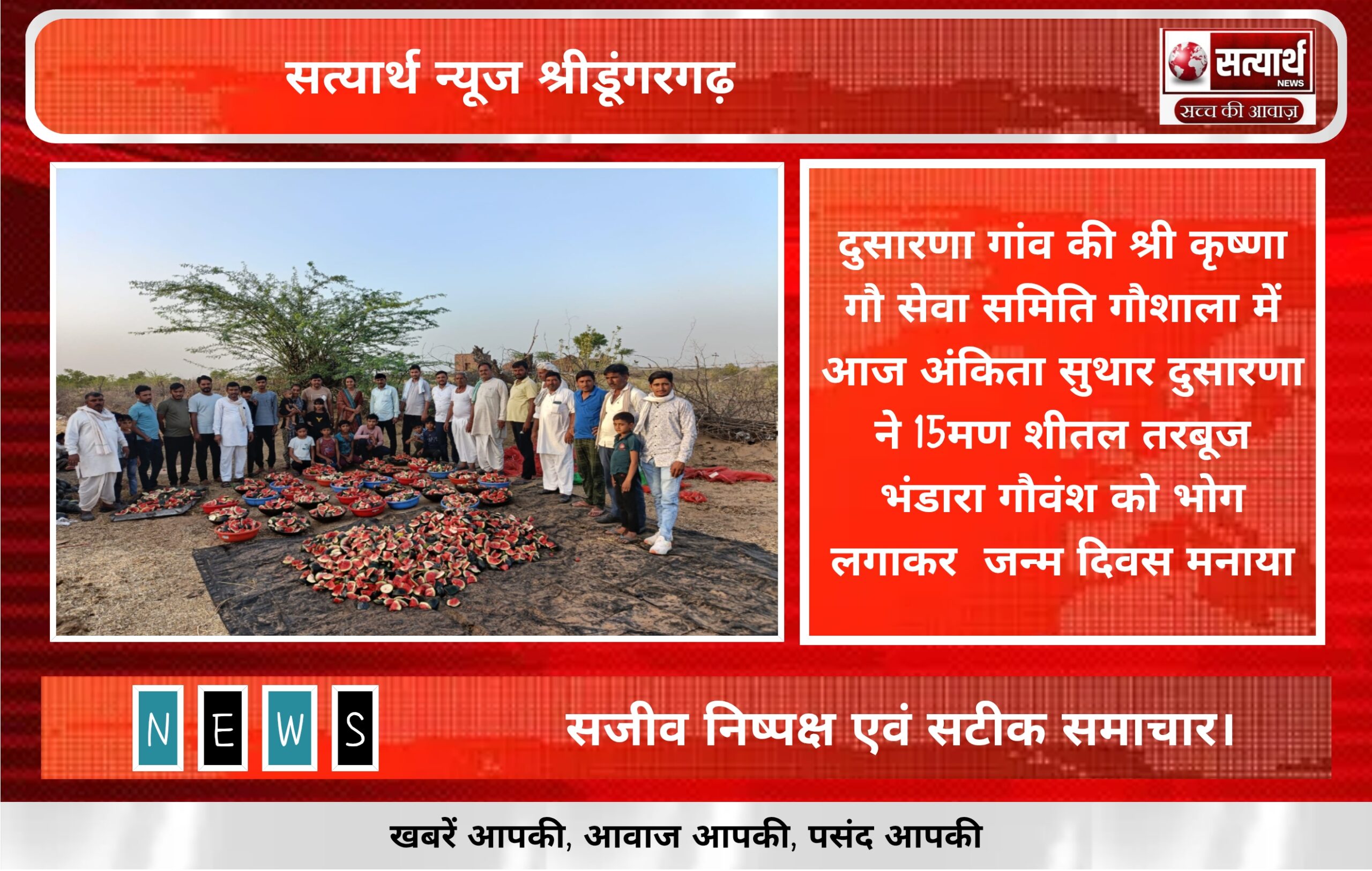 सत्यार्थ न्यूज श्रीडूंगरगढ़-सवांददाता ब्यूरो चीफ श्री गोपाल गौशाला दुलचासर में आज केसरी चंद भैरूदान मुंधड़ा परिवार,दुलचासर प्रवासी मुंबई से भामाशाह…
