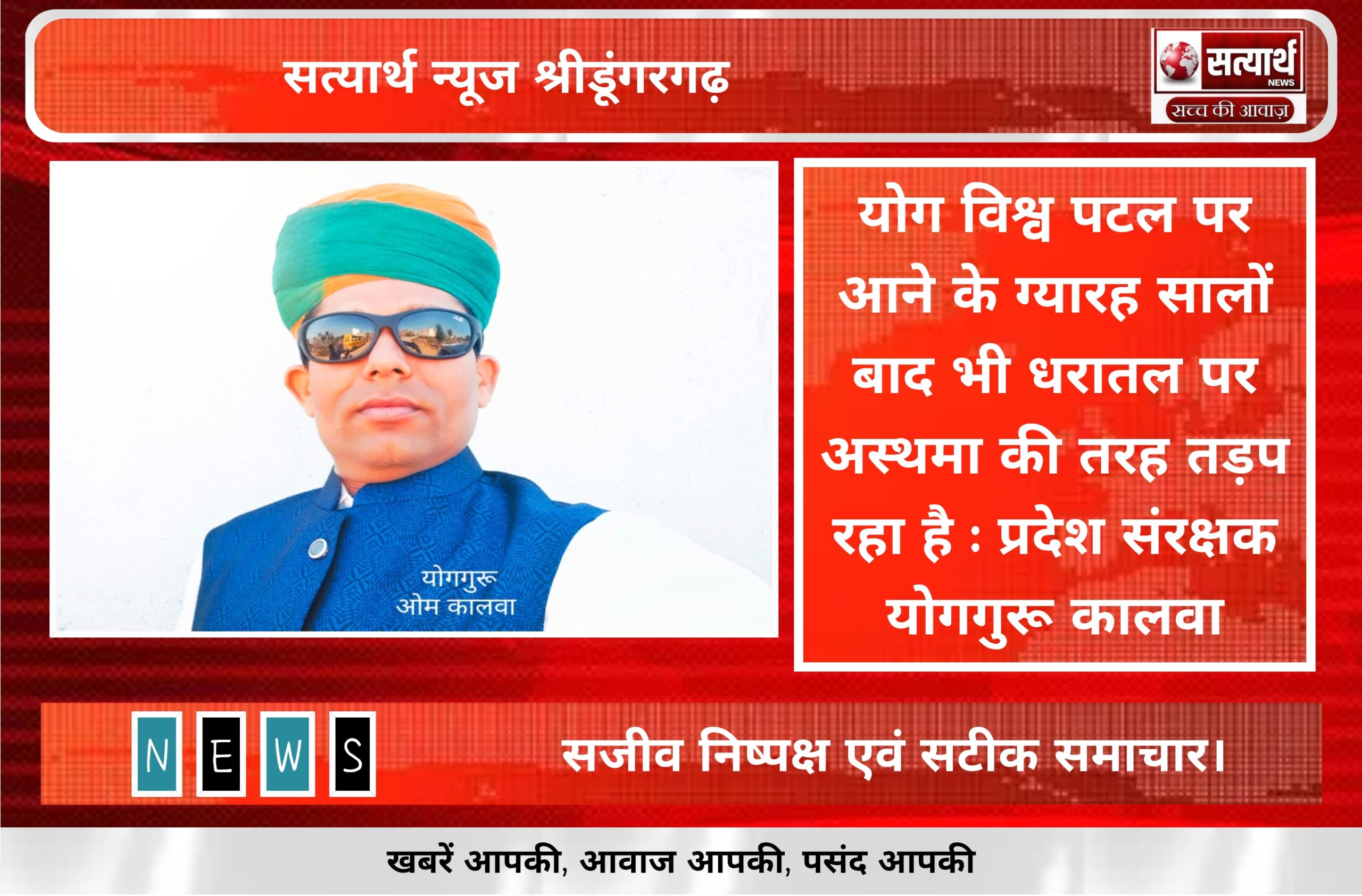 योग विश्व पटल पर आने के ग्यारह सालों बाद भी धरातल पर अस्थमा की तरह तड़प रहा है : प्रदेश संरक्षक योगगुरू कालवा