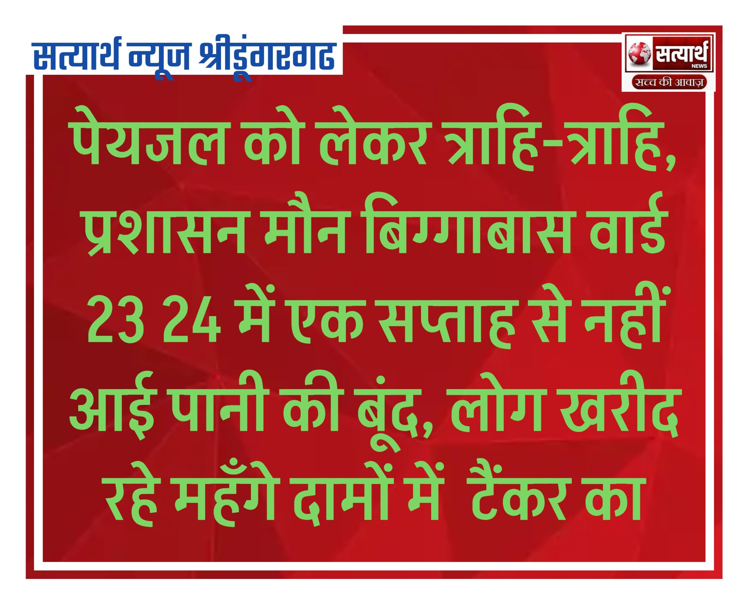 पेयजल को लेकर त्राहि-त्राहि, प्रशासन मौन बिग्गाबास वार्ड 23 24 में एक सप्ताह से नहीं आई पानी की बूंद, लोग खरीद रहे महँगे दामों में टैंकर का