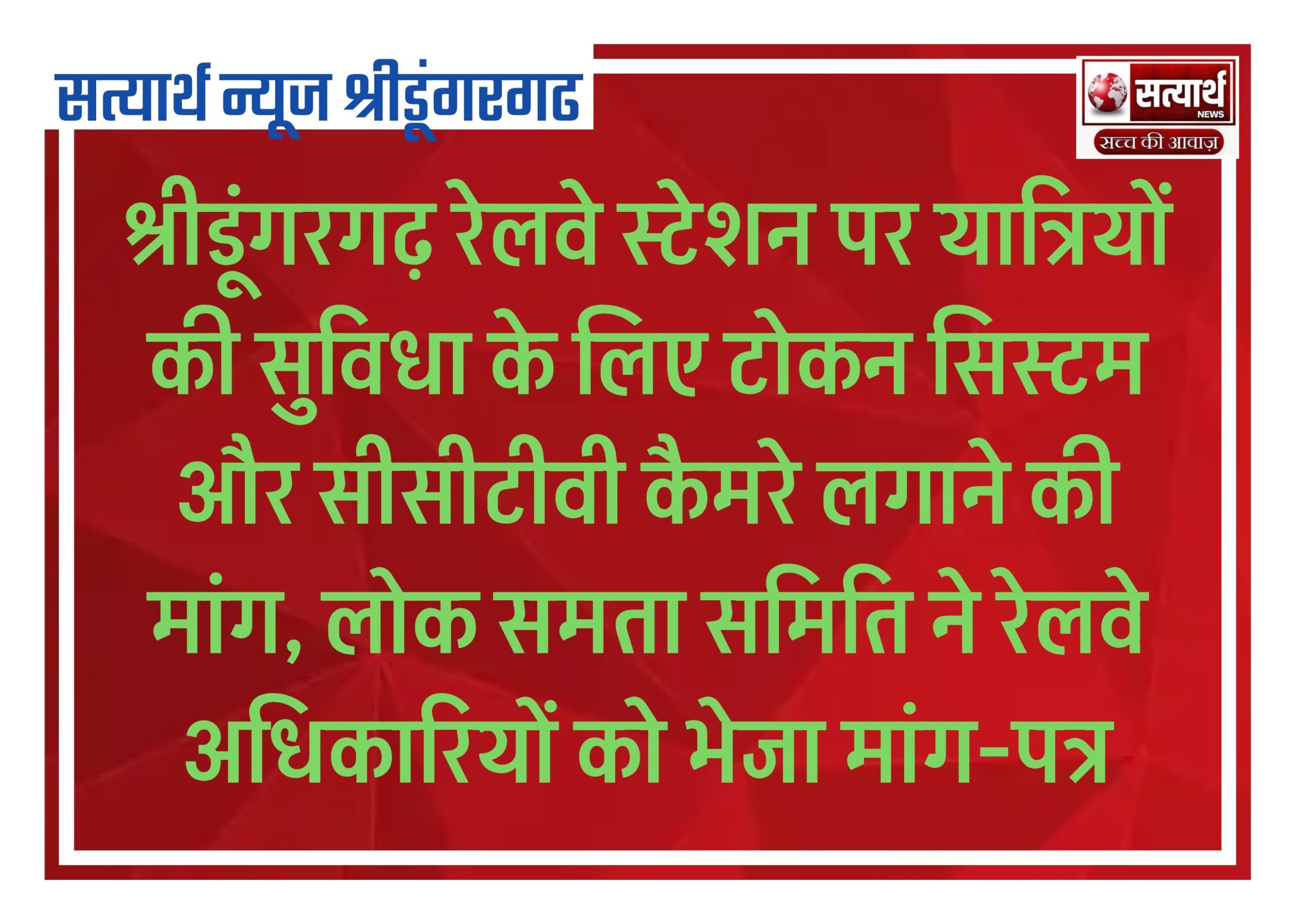 सत्यार्थ न्यूज श्रीडूंगरगढ़-सवांददाता ब्यूरो चीफ लोक समता समिति के महासचिव तुलसीराम चौरड़िया ने उत्तर पश्चिम रेलवे जयपुर के महाप्रबंधक तथा…