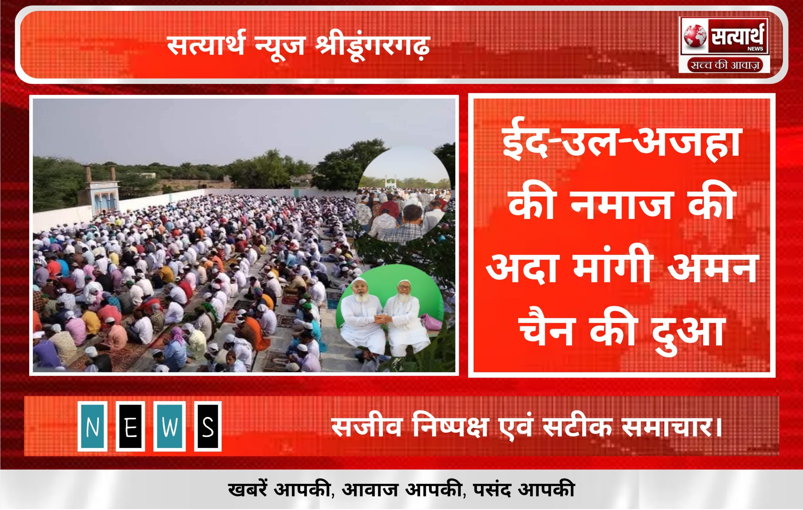 सत्यार्थ न्यूज श्रीडूंगरगढ़-सवांददाता ब्यूरो चीफ कस्बें में आज शुक्रवार सुबह ईद-उल-अजहा की नमाज उत्साह के साथ सामुहिक रूप से अदा…