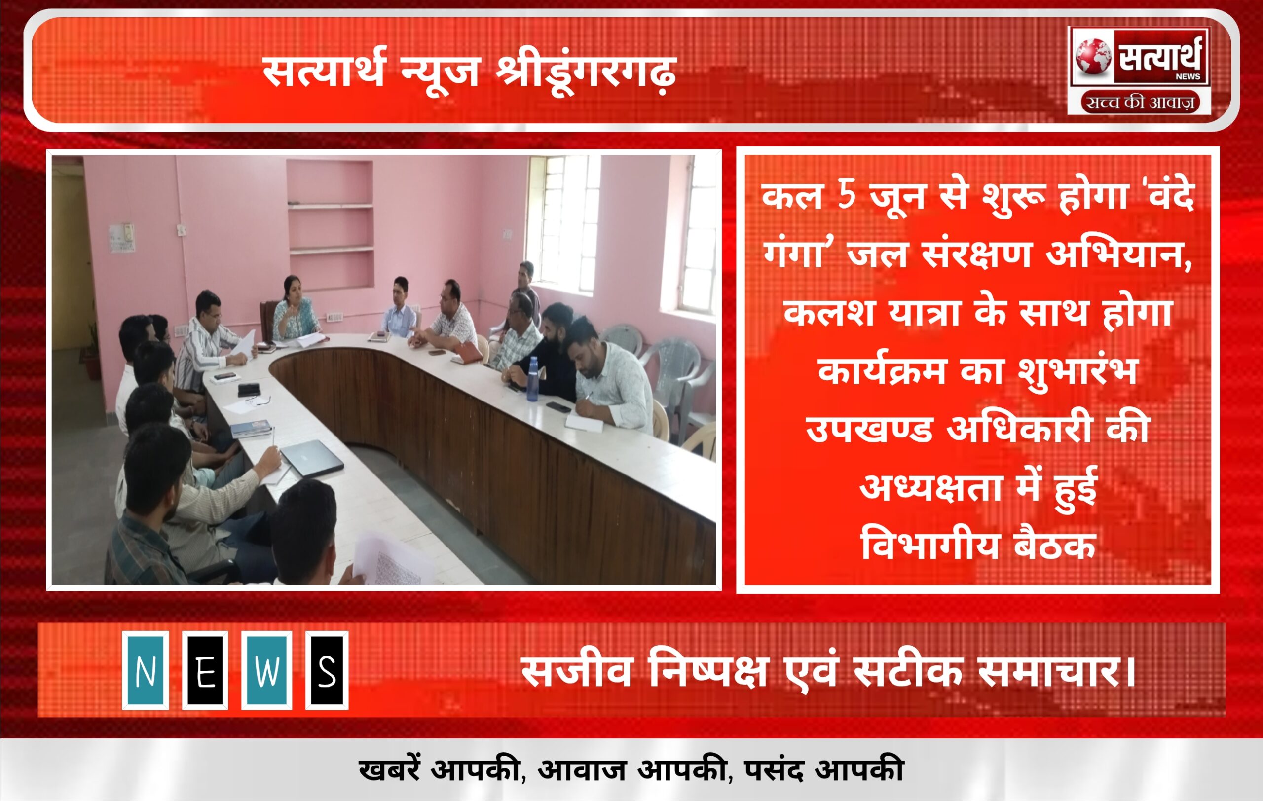 सत्यार्थ न्यूज श्रीडूंगरगढ़-सवांददाता ब्यूरो चीफ 5 जून से 20 जून तक प्रदेशभर में आयोजित होने वाले ‘वंदे गंगा जल संरक्षण…