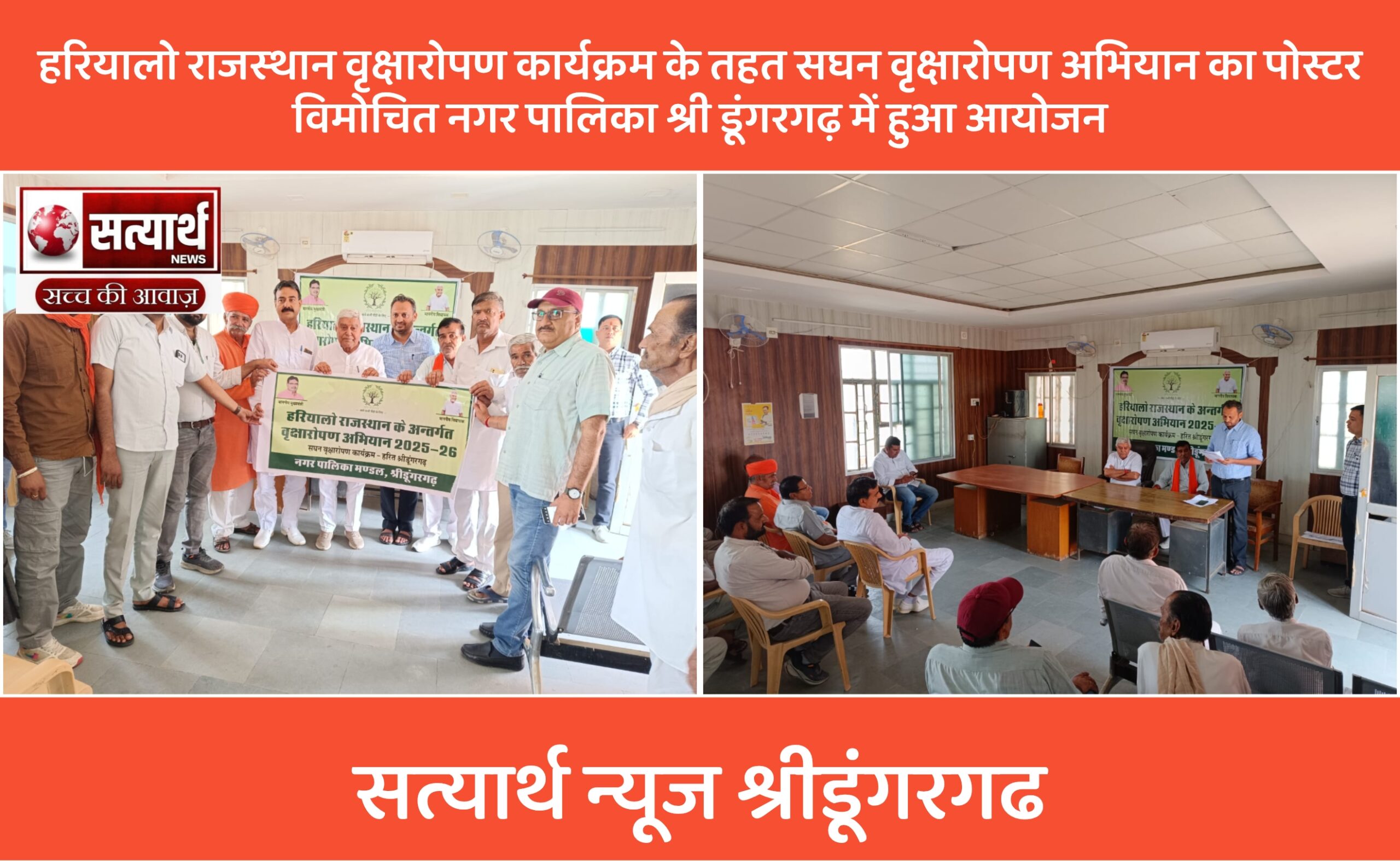 सत्यार्थ न्यूज श्रीडूंगरगढ़-सवांददाता ब्यूरो चीफ हरियालो राजस्थान के अंतर्गत चल रहे सघन वृक्षारोपण अभियान के पोस्टर का आज नगर पालिका…