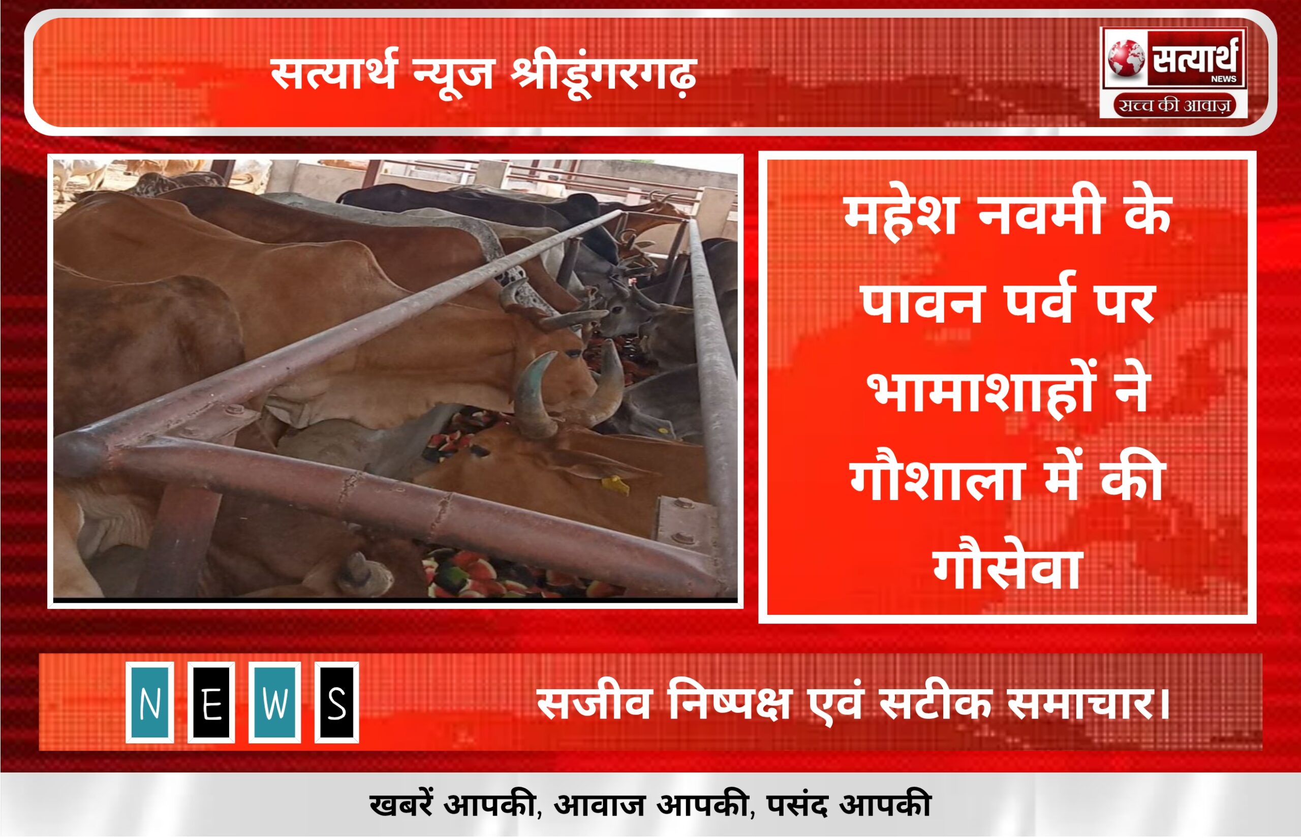 सत्यार्थ न्यूज श्रीडूंगरगढ़ -सवांददाता ब्यूरो चीफ श्री गोपाल गौशाला दुलचासर में आज महेश नवमी के पावन पर्व पर भामाशाह प्रवीण…