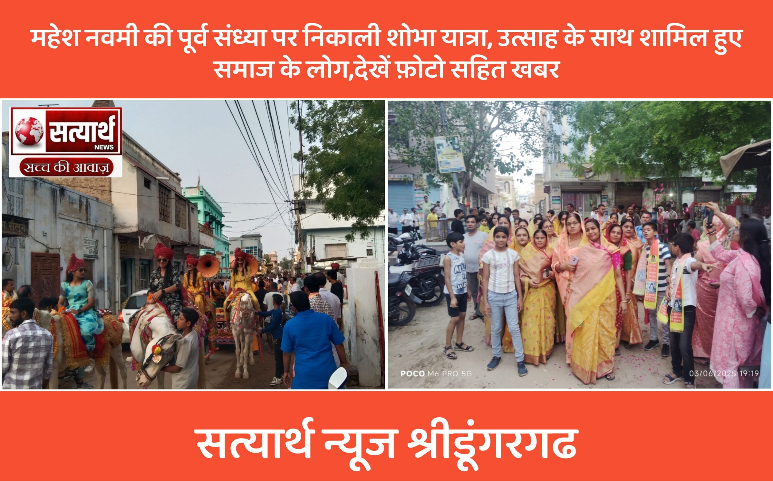 सत्यार्थ न्यूज श्रीडूंगरगढ़-सवांददाता ब्यूरो चीफ माहेश्वरी समाज के वंशोत्पत्ति दिवस की पूर्व संध्या पर मंगलवार शाम को भव्य शोभा यात्रा…