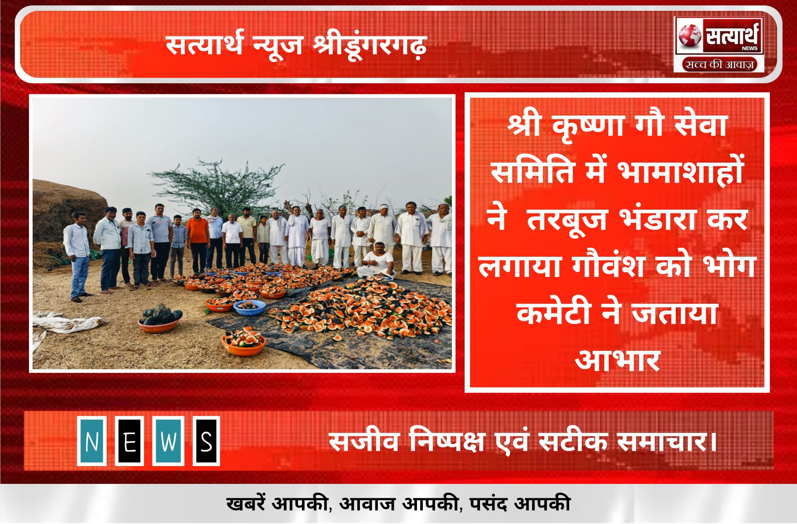 सत्यार्थ न्यूज श्रीडूंगरगढ़-सवांददाता मीडिया प्रभारी शिवलाल,हीराराम गोदारा 2100 रामेश्वर पेमाराम सुथार 2100 शीतल मीठे तरबूज का भंडारा गो वंश समर्पित…