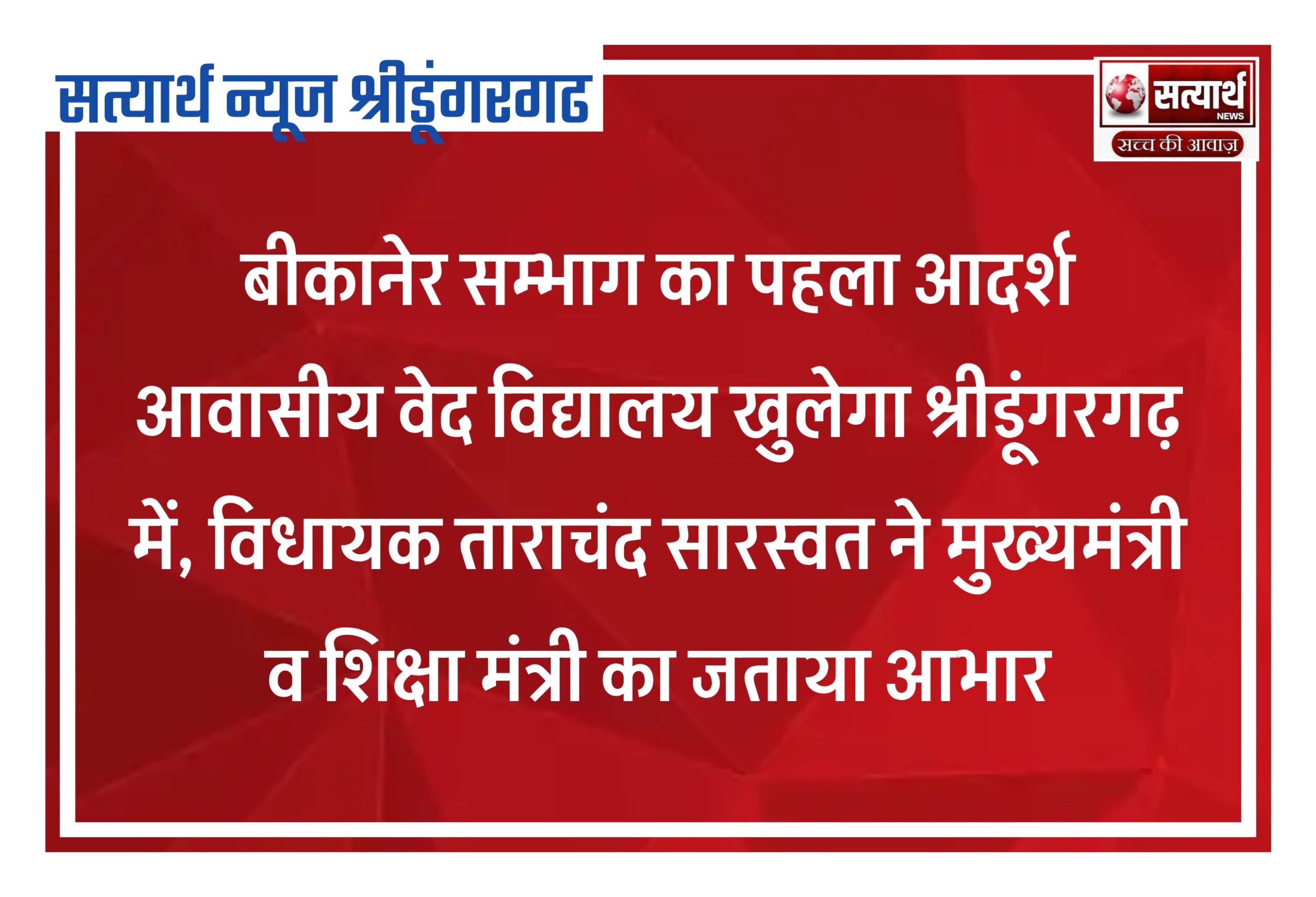 सत्यार्थ न्यूज श्रीडूंगरगढ़- सवांददाता ब्यूरो चीफ सूरत प्रवासी लूणाराम माली बालाजी कॉर्पोरेशन सुरत की तरफ से 3100 की राशि समर्पित…