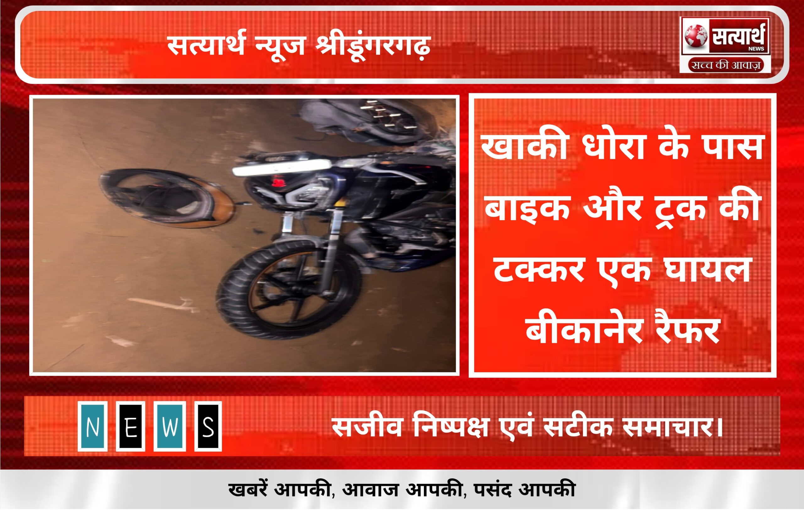 सत्यार्थ न्यूज श्रीडूंगरगढ़ -सवांददाता ब्यूरो चीफ रविवार देर रात राष्ट्रीय राजमार्ग 11 पर खाकी धोरा के बाइक और ट्रक की…