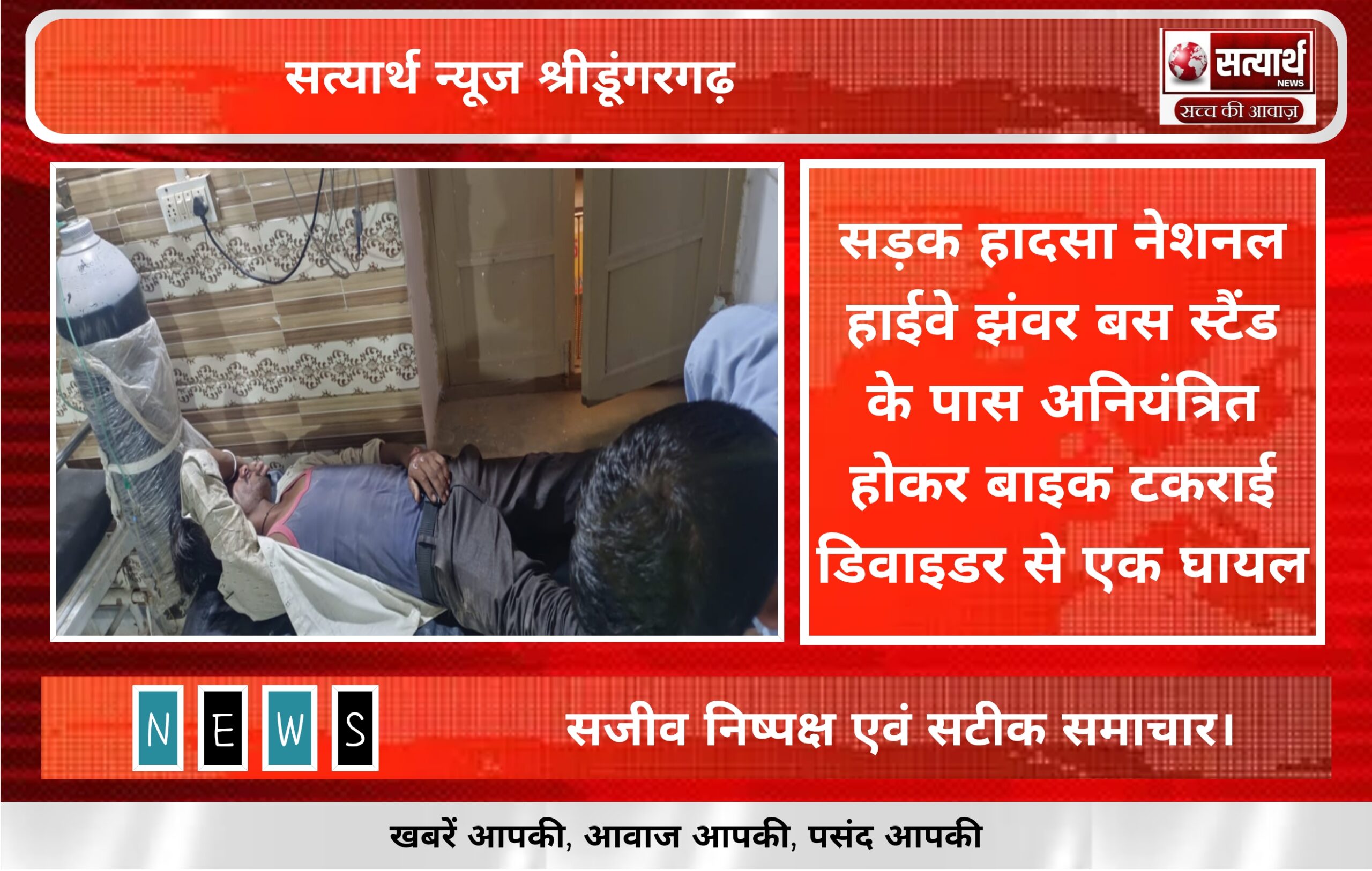 सत्यार्थ न्यूज श्रीडूंगरगढ़-सवांददाता ब्यूरो चीफ श्रीडूंगरगढ़ सड़क हादसे लगातार बढ़ रहे हैं। अभी झवर स्टैंड पर एक बाइक अनियंत्रित होकर…