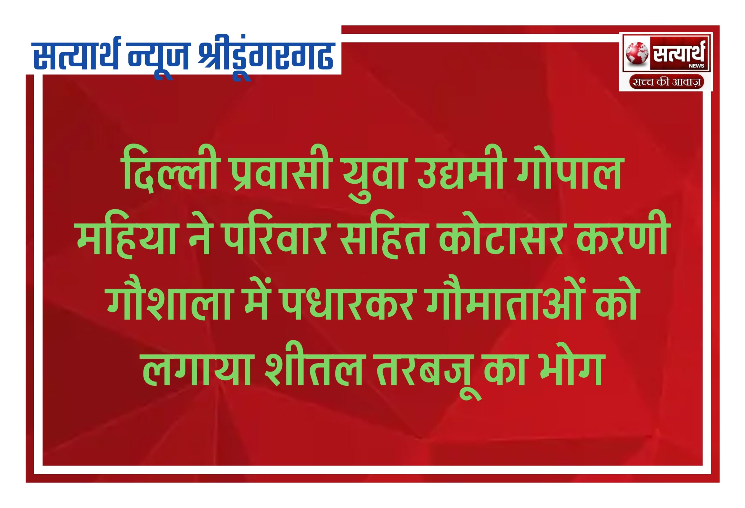सत्यार्थ न्यूज श्रीडूंगरगढ़-सवांददाता मीडिया प्रभारी गौशाला के भामाशाह दिल्ली के युवा उद्यमी गोपाल महिया दुलचासर ने आज अपनी बिटिया निकिता…