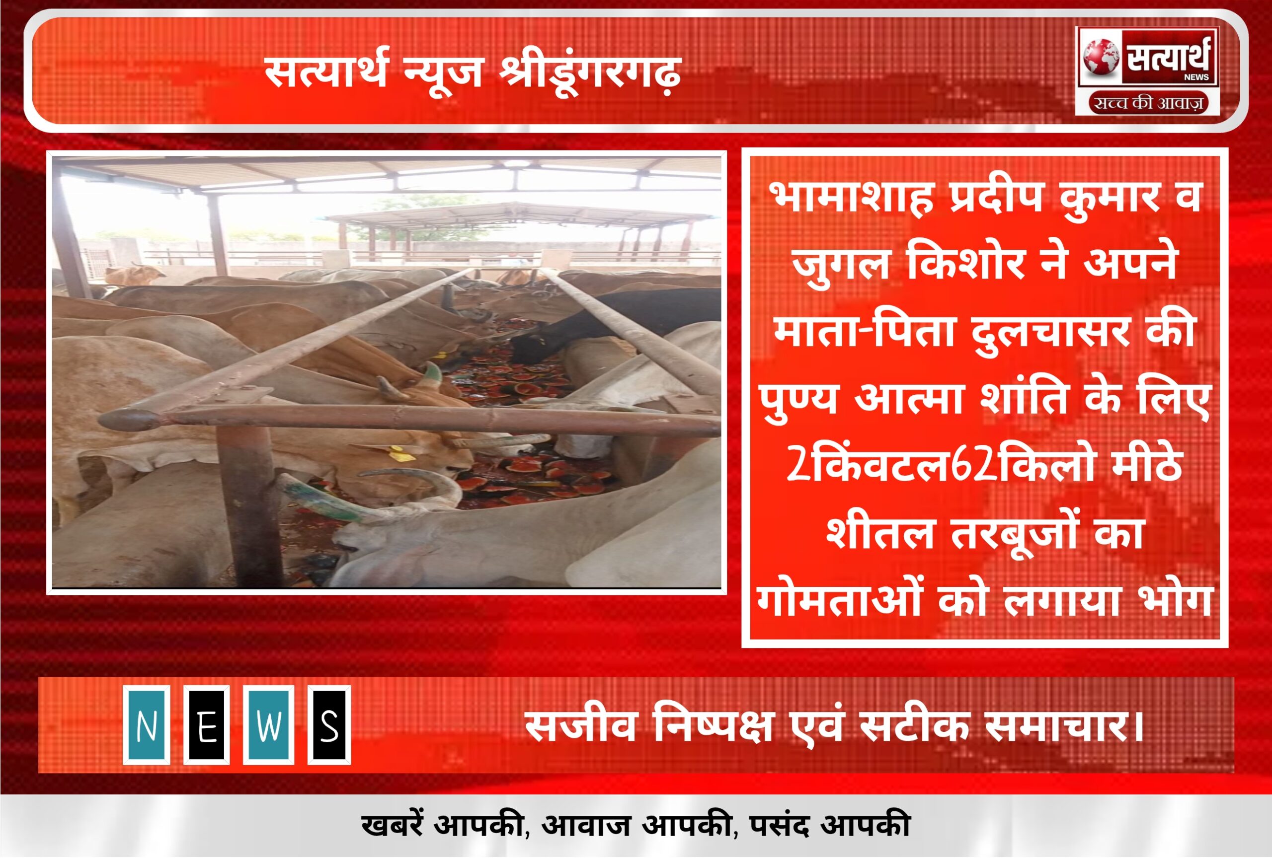 सत्यार्थ न्यूज श्रीडूंगरगढ़-सवांददाता ब्यूरो चीफ श्री गोपाल गौशाला दुलचासर में आज भामाशाह प्रदीप कुमार जुगल किशोर ने अपनी स्व.माताश्री गीता…