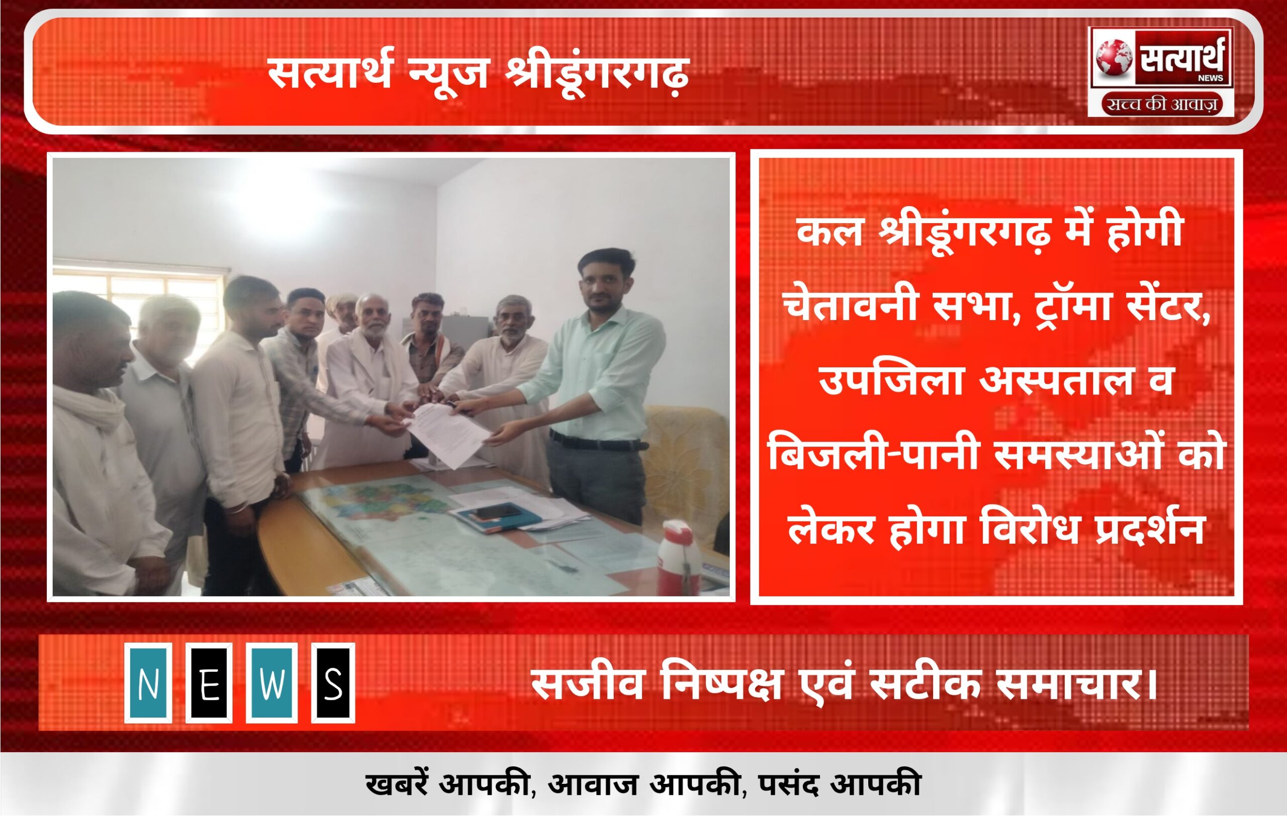 सत्यार्थ न्यूज श्रीडूंगरगढ़-सवांददाता ब्यूरो चीफ ट्रॉमा सेंटर और उपजिला अस्पताल निर्माण कार्य शुरू करवाने सहित क्षेत्र की बिजली-पानी की समस्याओं…