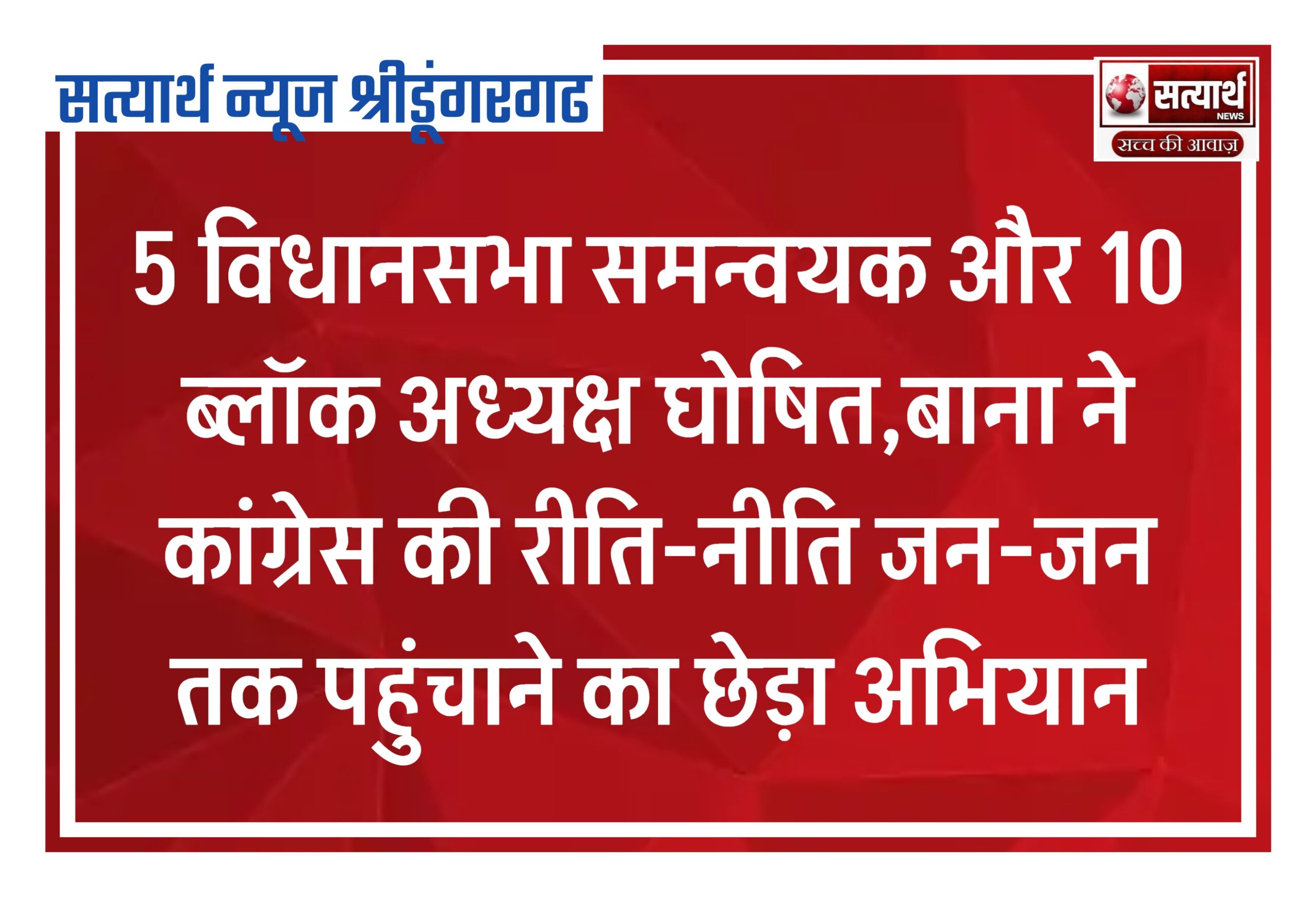 सत्यार्थ न्यूज श्रीडूंगरगढ़-सवांददाता ब्यूरो चीफ पिछले 20 सालों से एनएसयूआई, यूथ कांग्रेस, कांग्रेस में तहसील से लेकर प्रदेश तक विभिन्न…