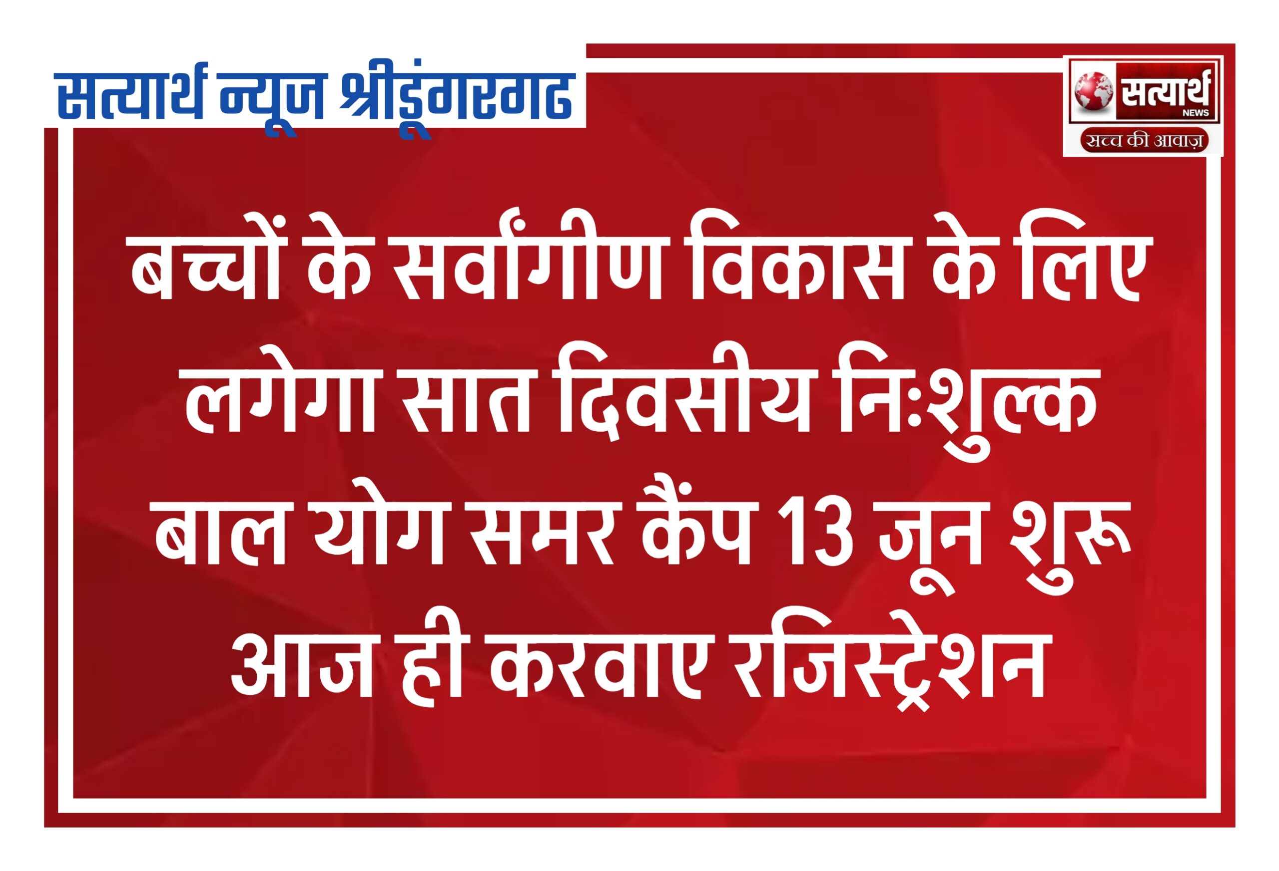 सत्यार्थ न्यूज श्रीडूंगरगढ़-सवांददाता ब्यूरो चीफ महापुरुष समारोह समिति श्रीडूंगरगढ़ के तत्वावधान में ग्रीष्मकालीन छुटियों में बच्चों हेतु बाल योग समर…
