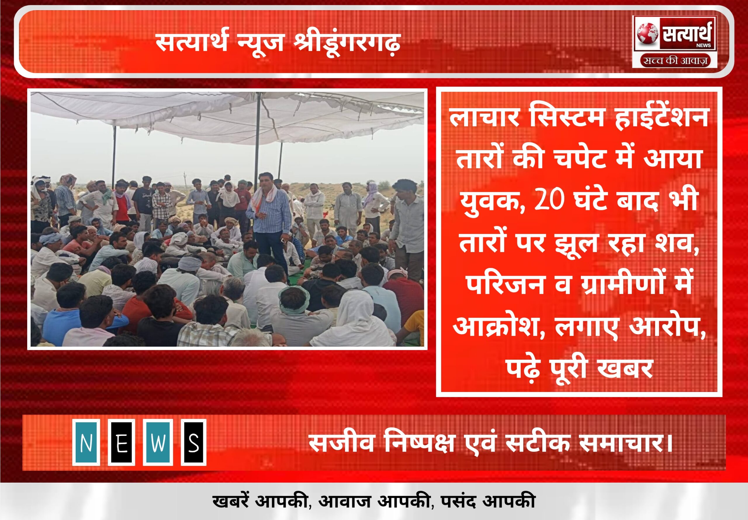 सत्यार्थ न्यूज श्रीडूंगरगढ़ -सवांददाता ब्यूरो चीफ लूणकरणसर के साबनिया गांव में मंगलवार रात करीब 10 बजे जमीन पर लटक रहें…