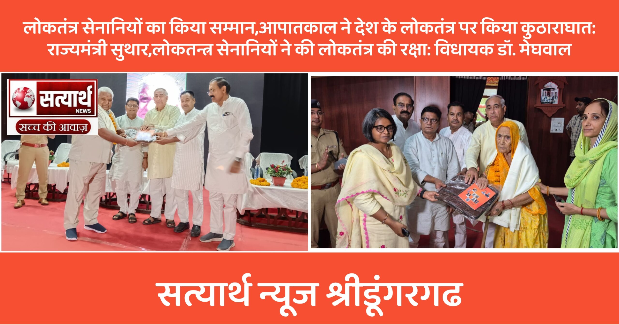 सत्यार्थ न्यूज श्रीडूंगरगढ़-सवांददाता ब्यूरो चीफ आपातकाल लगाए जाने के 50 वर्ष पूर्ण होने पर बुधवार को जिले के लोकतंत्र सेनानियों…