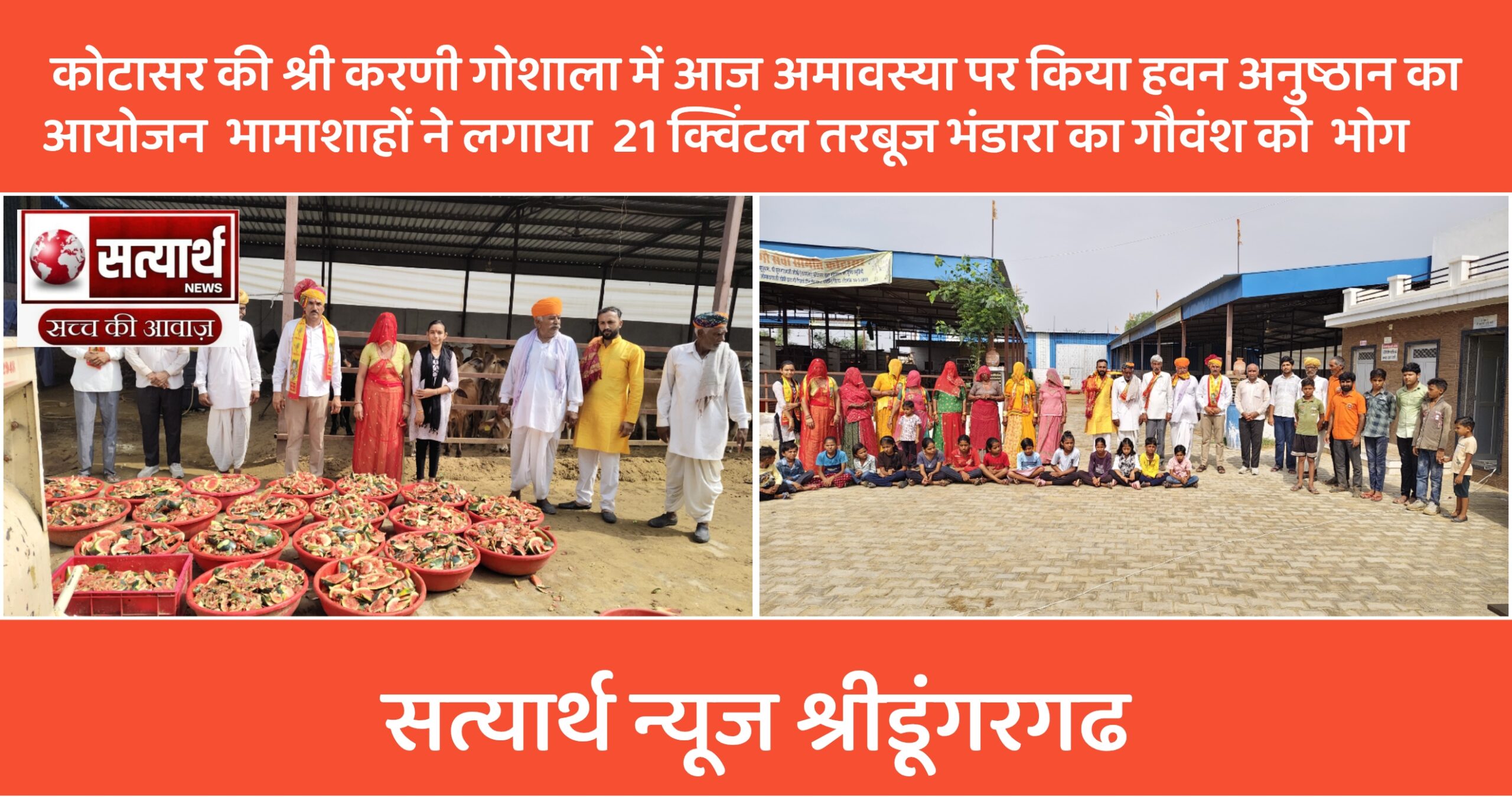 सत्यार्थ न्यूज श्रीडूंगरगढ़- सवांददाता मीडिया प्रभारी आज अमावस्या के पावन अवसर पर गौशाला परिसर में सामूहिक रूप से हवन अनुष्ठान…