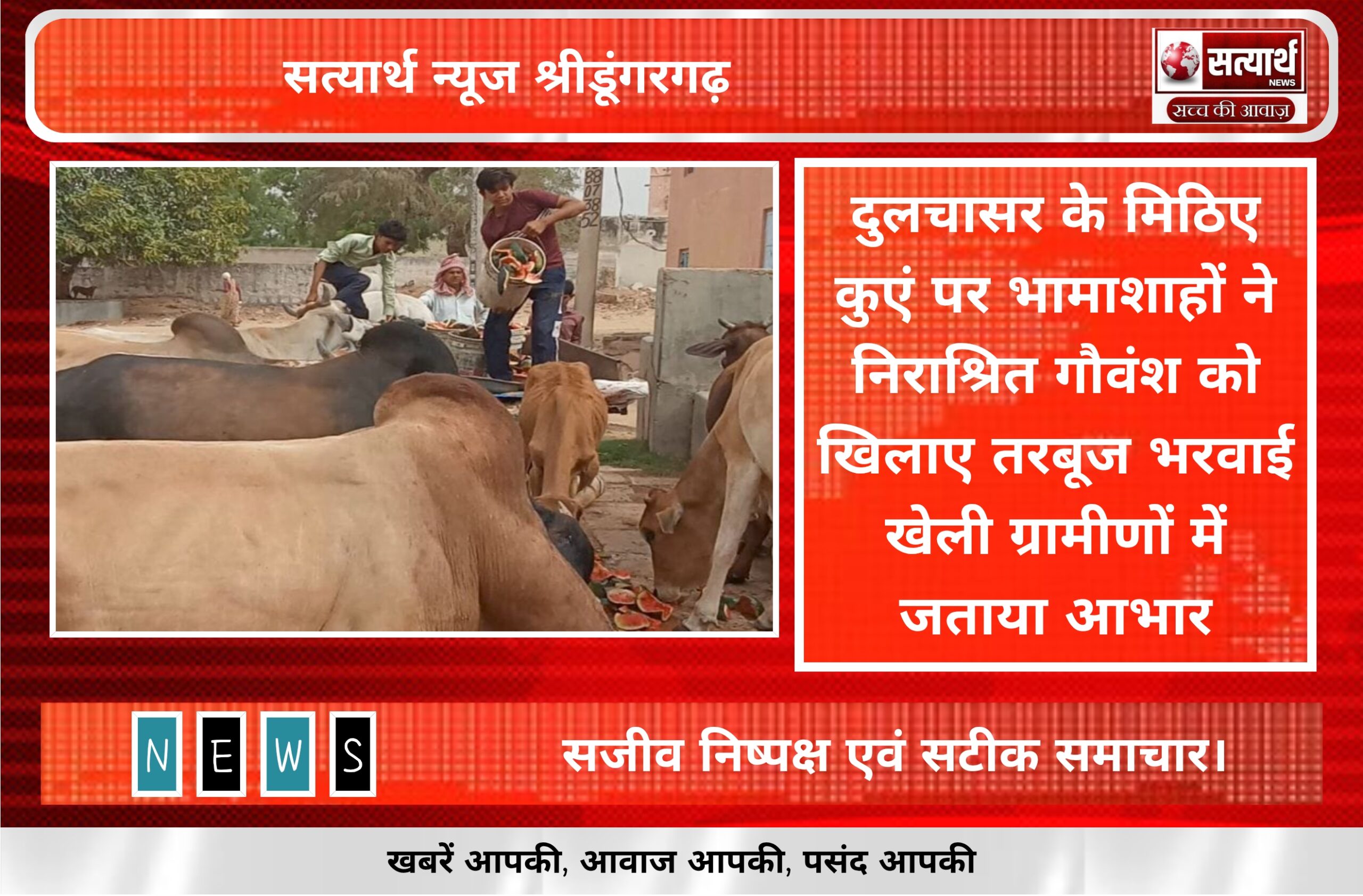 सत्यार्थ न्यूज श्रीडूंगरगढ़-सवांददाता ब्यूरो चीफ क्षेत्र के गांव दुलचासर के मिठिए कुएं पर जेष्ठ महीने की भंयकर गर्मी व नौतपा…