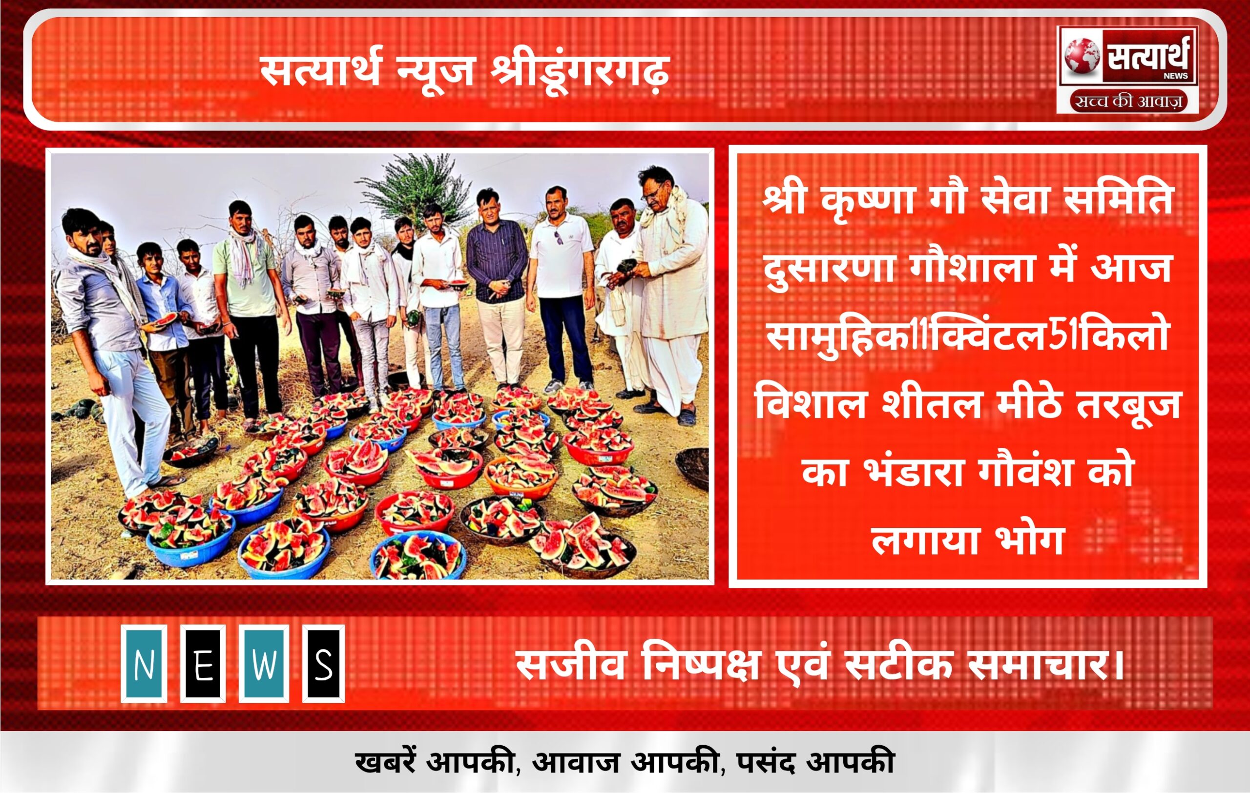 सत्यार्थ न्यूज श्रीडूंगरगढ़-सवांददाता मीडिया प्रभारी श्री कृष्णा गौ सेवा समिति दुसारणा गौशाला में आज सामुहिक 11क्विंटल 51 किलो विशाल शीतल…