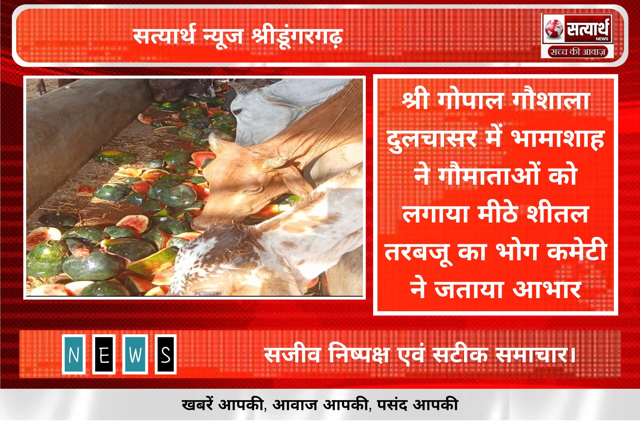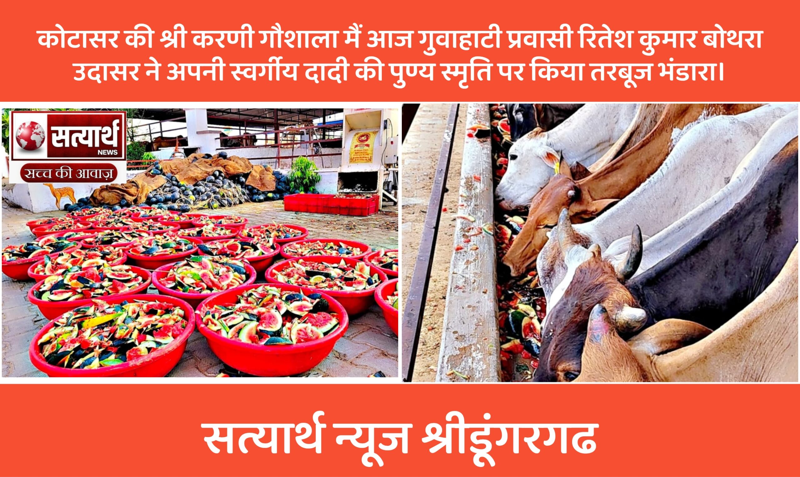सत्यार्थ न्यूज श्रीडूंगरगढ़-सवांददाता ब्यूरो चीफ श्री गोपाल गौशाला दुलचासर में जेष्ठ के पवित्र महीने में भामाशाह दुर्गा देवी झंवर (सुपुत्री…
