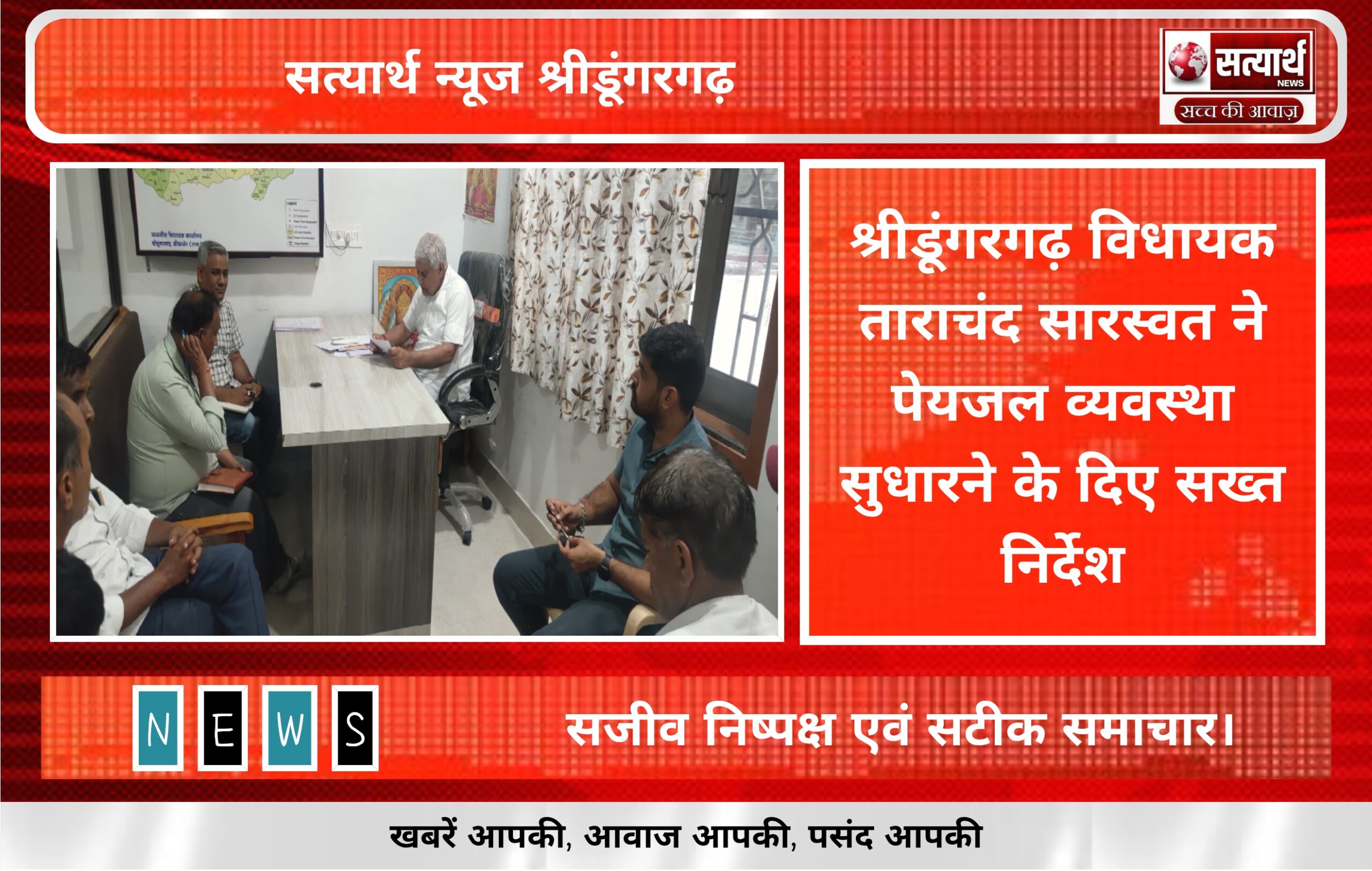 सत्यार्थ न्यूज श्रीडूंगरगढ़- सवांददाता ब्यूरो चीफ विधायक ताराचंद सारस्वत ने आज जन स्वास्थ्य अभियांत्रिकी विभाग के उच्च अधिकारियों को बुलाकर…