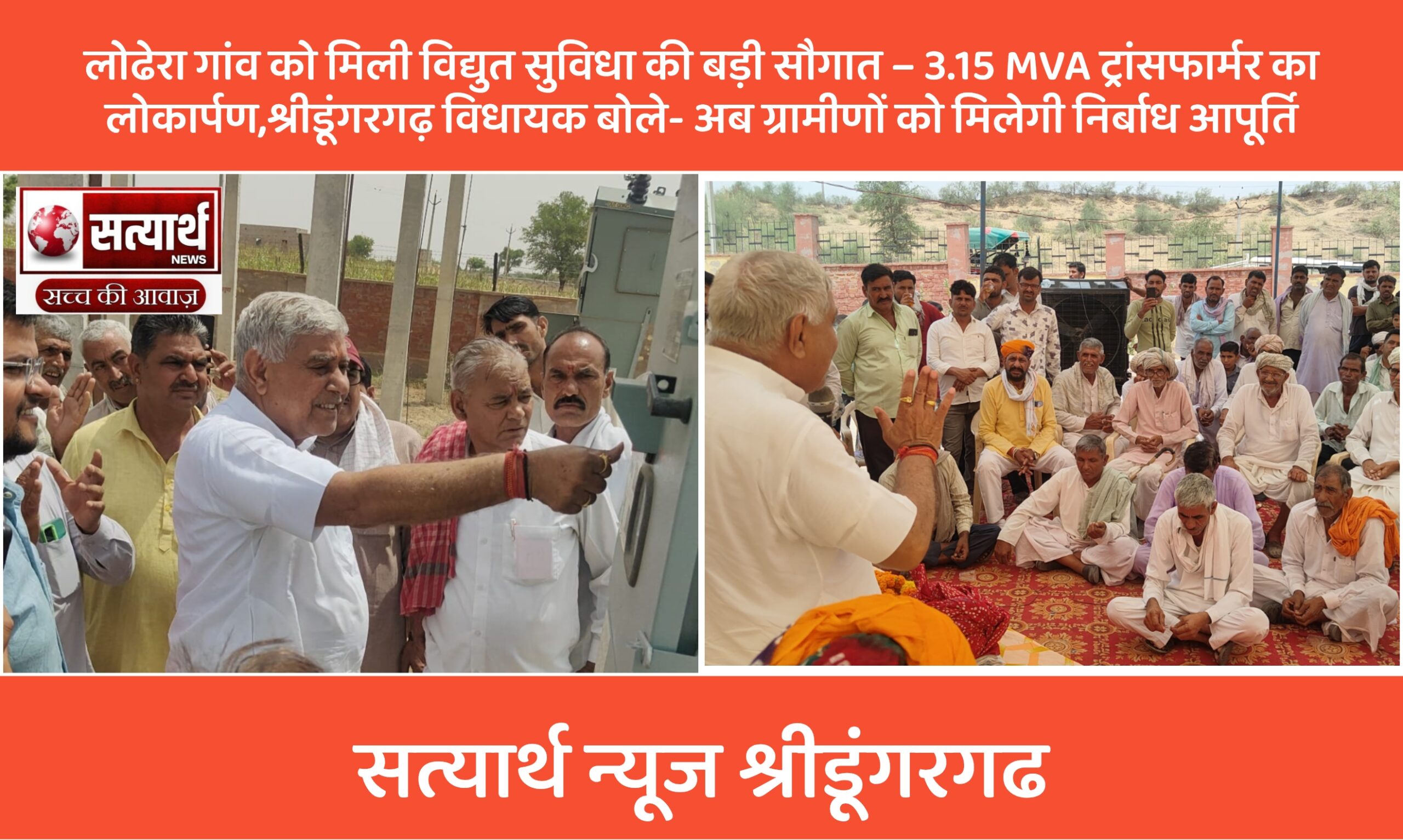 सत्यार्थ न्यूज श्रीडूंगरगढ़-सवांददाता ब्यूरो चीफ श्रीडूंगरगढ़ विधानसभा क्षेत्र के ग्राम लोढेरा में आज 33/11kv जीएसएस पर 3.15 MVA क्षमता के…