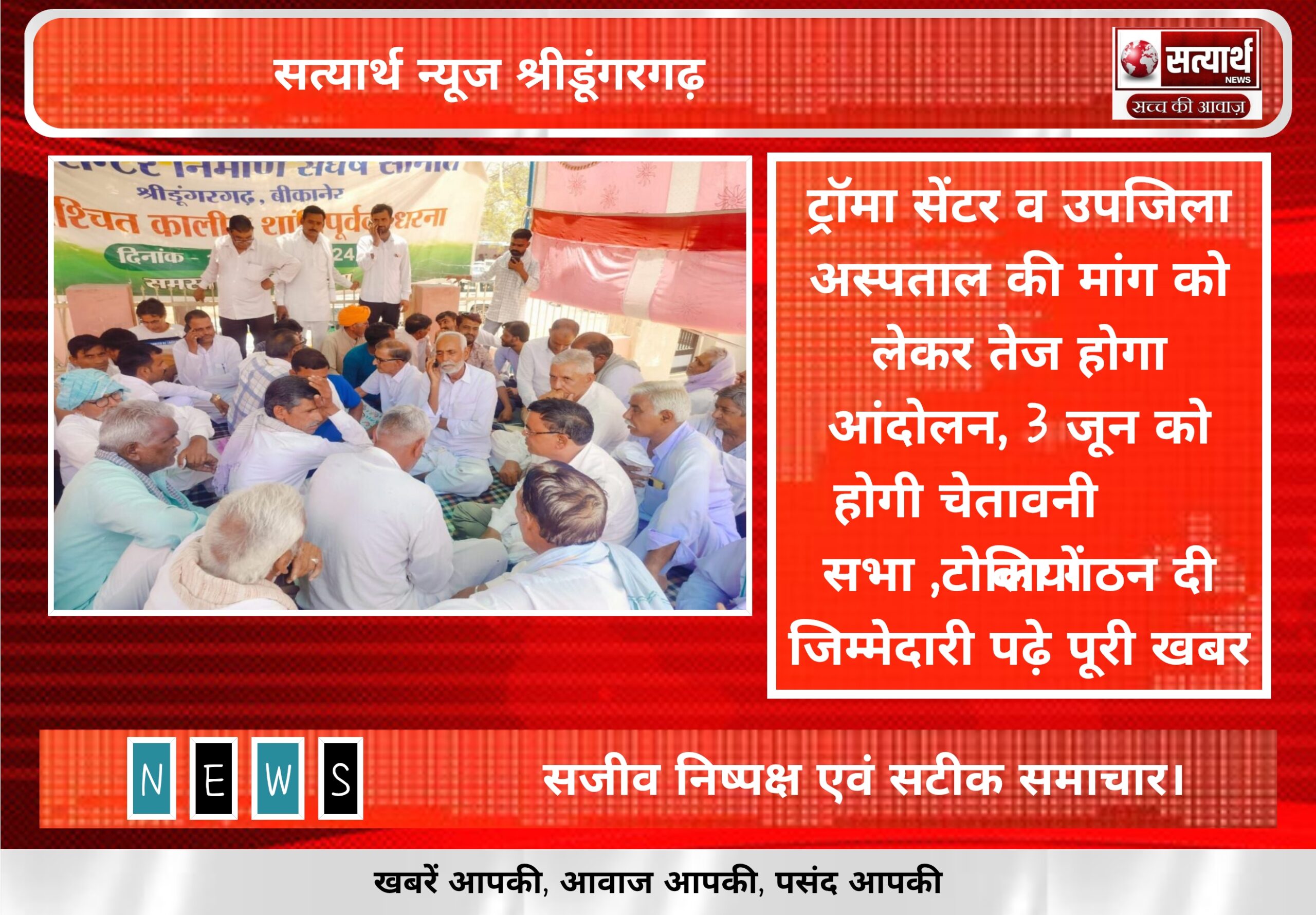 सत्यार्थ न्यूज श्रीडूंगरगढ़-सवांददाता ब्यूरो चीफ हाईवे की विवादित भूमि पर ट्रॉमा सेंटर और उपजिला अस्पताल के नव निर्माण की मांग…