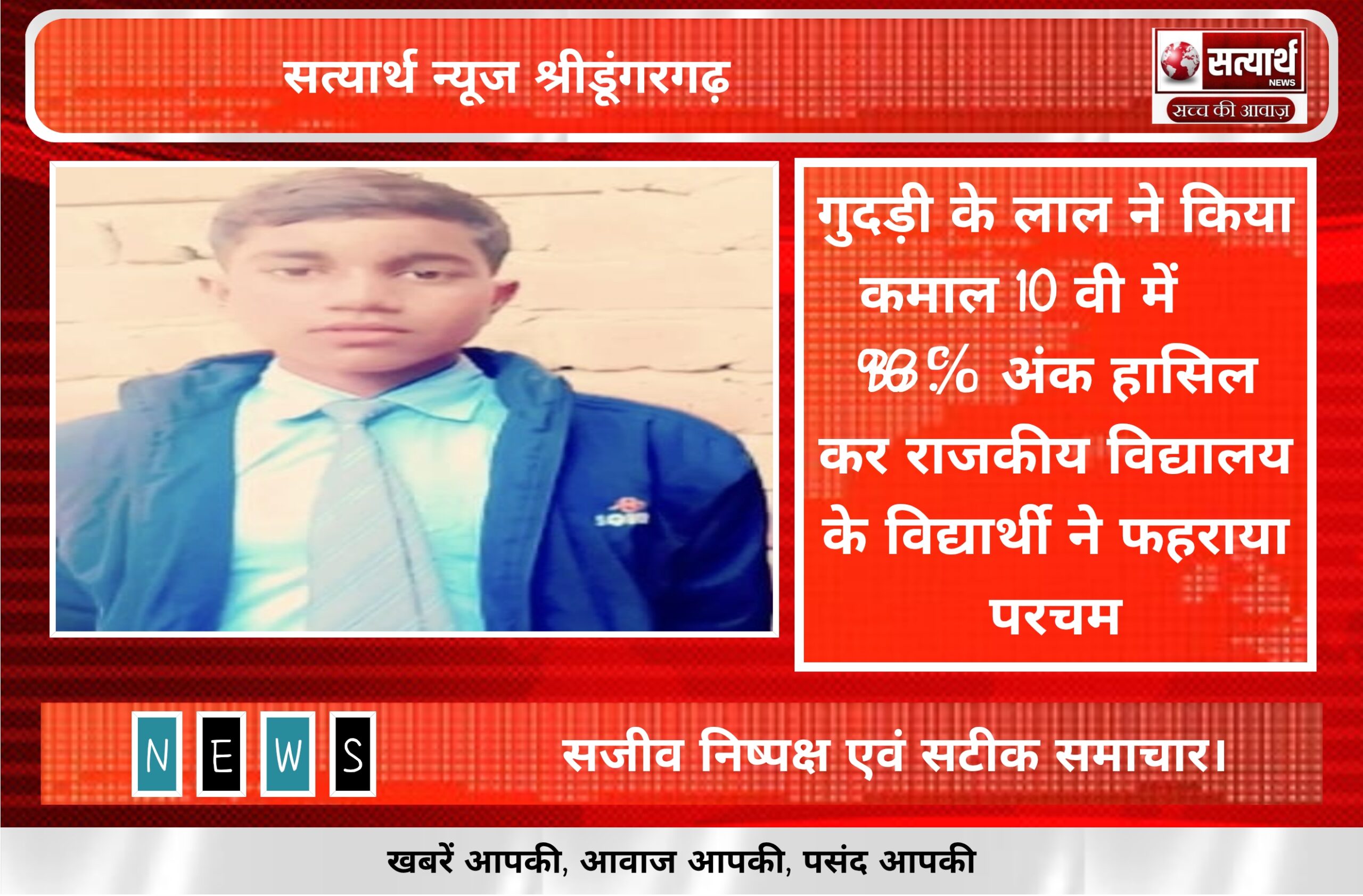 सत्यार्थ न्यूज श्रीडूंगरगढ़- सवांददाता नरसीराम शर्मा कड़ी मेहनत के बल पर सबसे शानदार रिजल्ट देने वाले श्रीडूंगरगढ़ तहसील रिड़ी का…