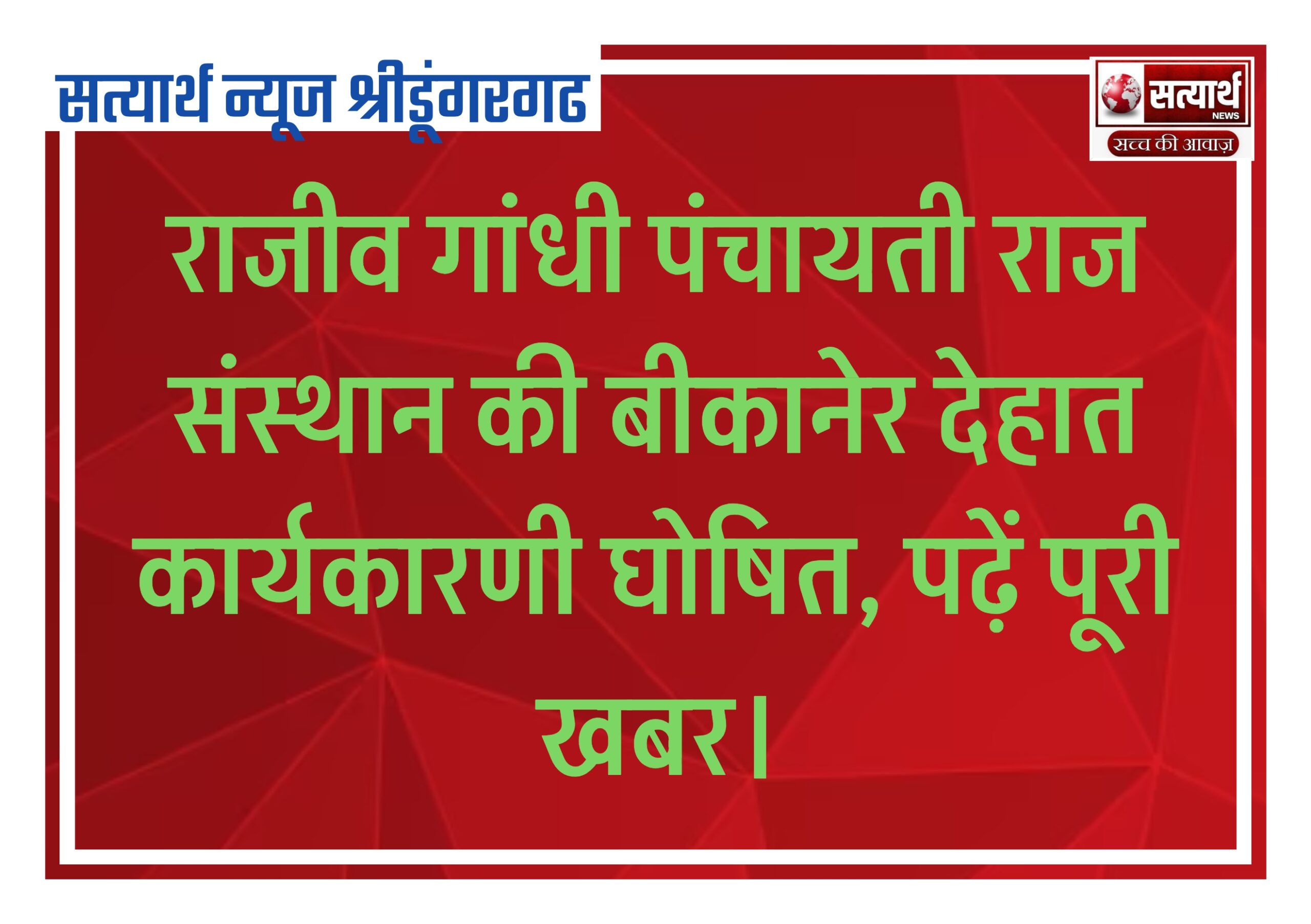 सत्यार्थ न्यूज श्रीडूंगरगढ़-सवांददाता ब्यूरो चीफ श्रीडूंगरगढ़। राजीव गांधी पंचायती राज संगठन बीकानेर देहात कार्यकारिणी बुधवार को संगठन द्वारा घोषित कर…