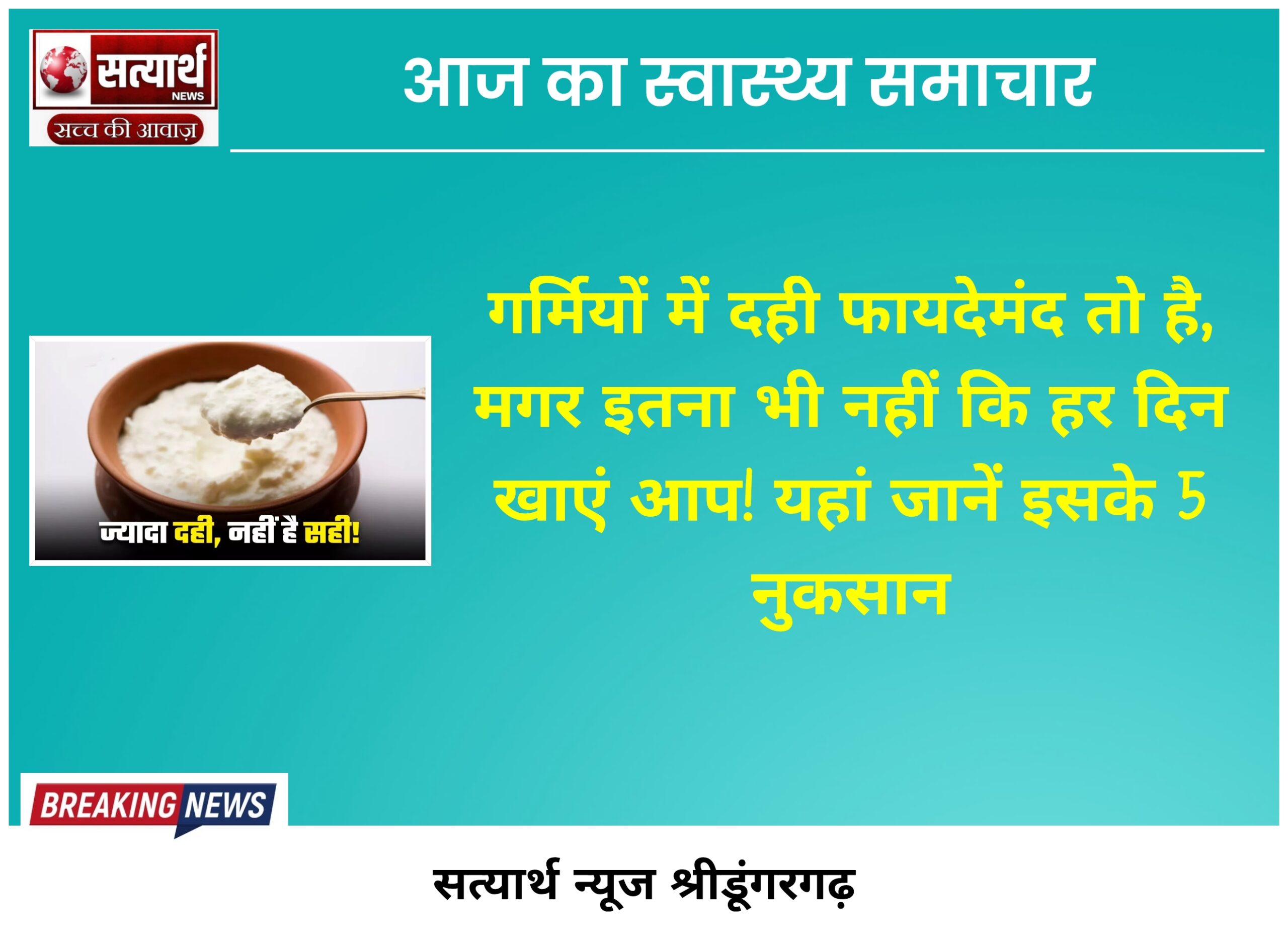 सत्यार्थ न्यूज श्रीडूंगरगढ़-सवांददाता मीडिया प्रभारी गर्मियों में दही खाना शायद आपको भी अच्छा लगता होगा लेकिन यहां हम आपको इसके…
