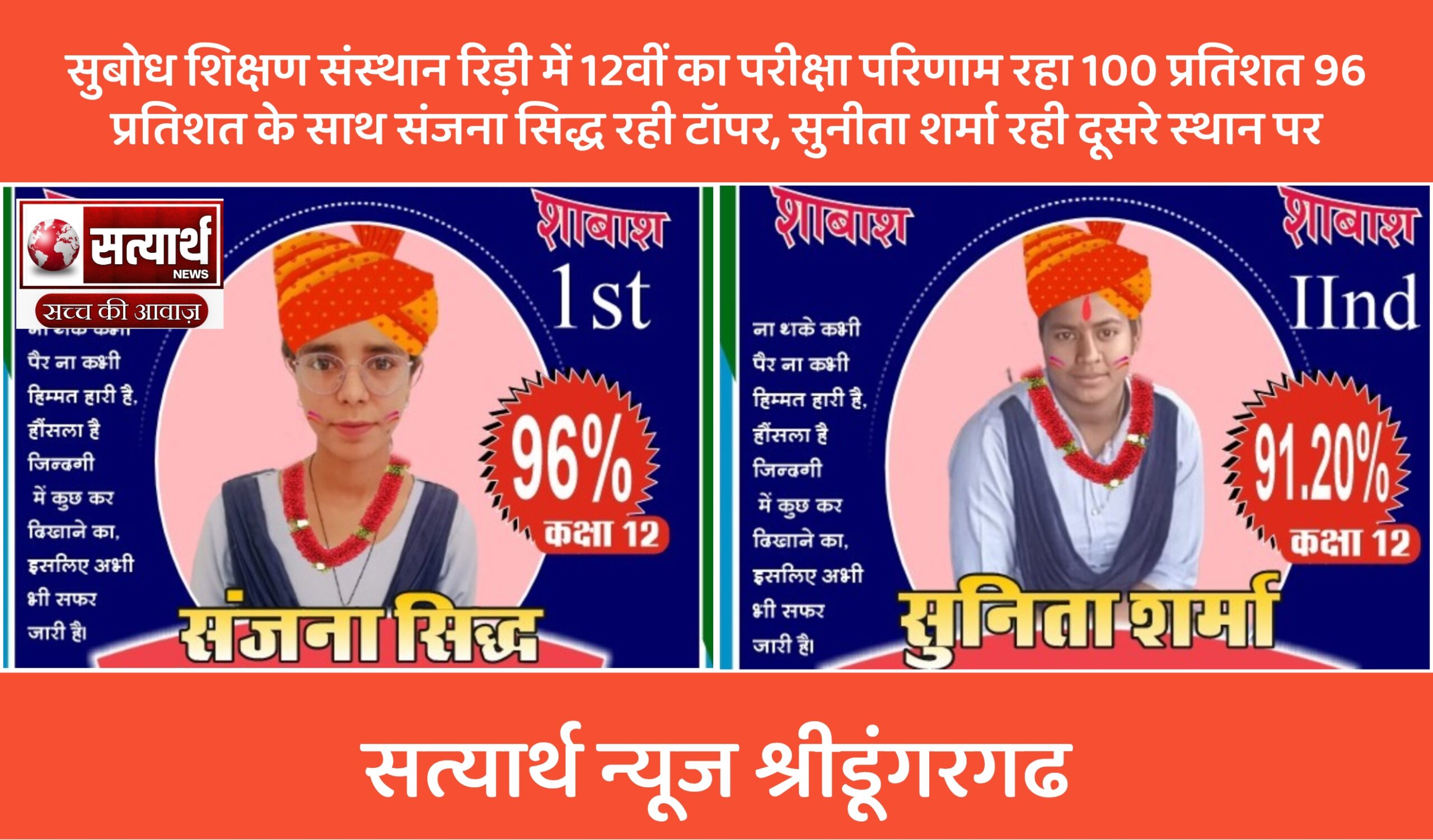सत्यार्थ न्यूज श्रीडूंगरगढ़- सवांददाता ब्यूरो चीफ कड़ी मेहनत के बल पर सबसे शानदार रिजल्ट देने वाले श्रीडूंगरगढ़ तहसील रिड़ी का…