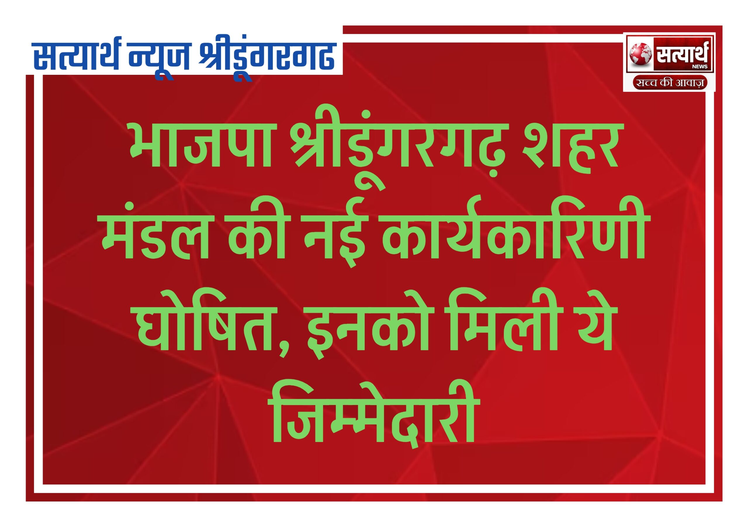 सत्यार्थ न्यूज श्रीडूंगरगढ़- सवांददाता ब्यूरो चीफ भारतीय जनता पार्टी बीकानेर देहात के जिला अध्यक्ष श्याम जी पंचारिया के निर्देशन में…