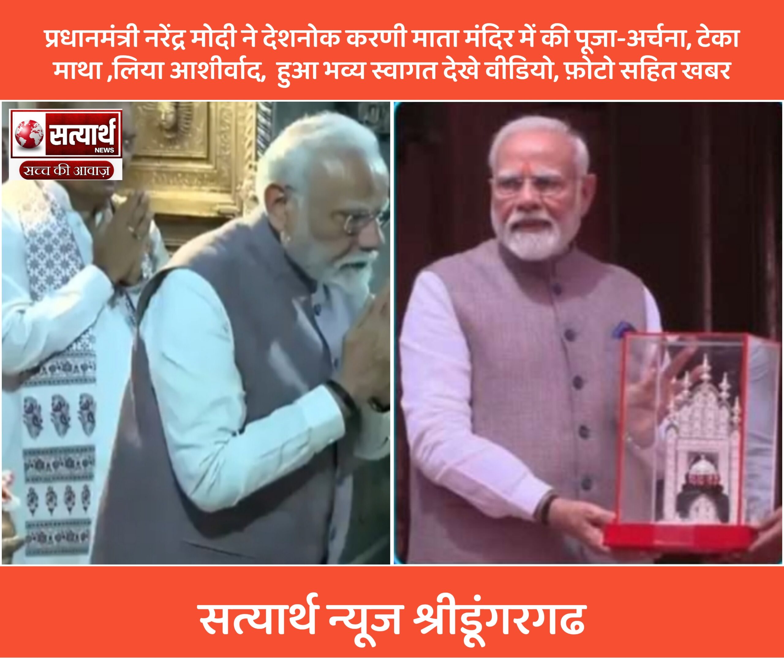 सत्यार्थ न्यूज श्रीडूंगरगढ़-सवांददाता ब्यूरो चीफ प्रधानमंत्री नरेंद्र मोदी बीकानेर दौरे के दौरान आज देशनोक स्थित करणी माता मंदिर पहुंचे, जहां…