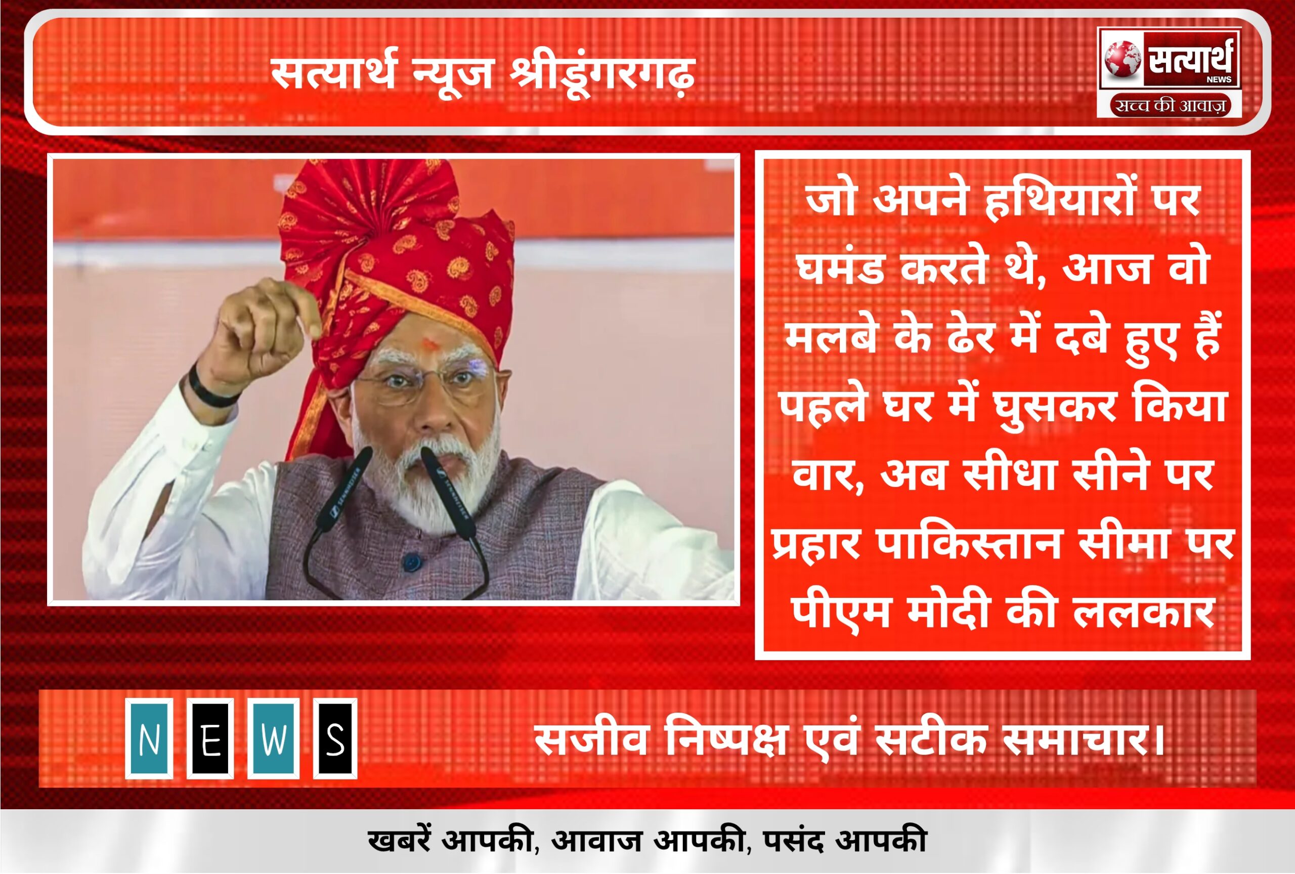 सत्यार्थ न्यूज श्रीडूंगरगढ़-सवांददाता नरसीराम शर्मा शाम की देश राज्यों से बड़ी खबरें *================================* *1* राजस्थान में PM बोले-हमारी सेना PAK…