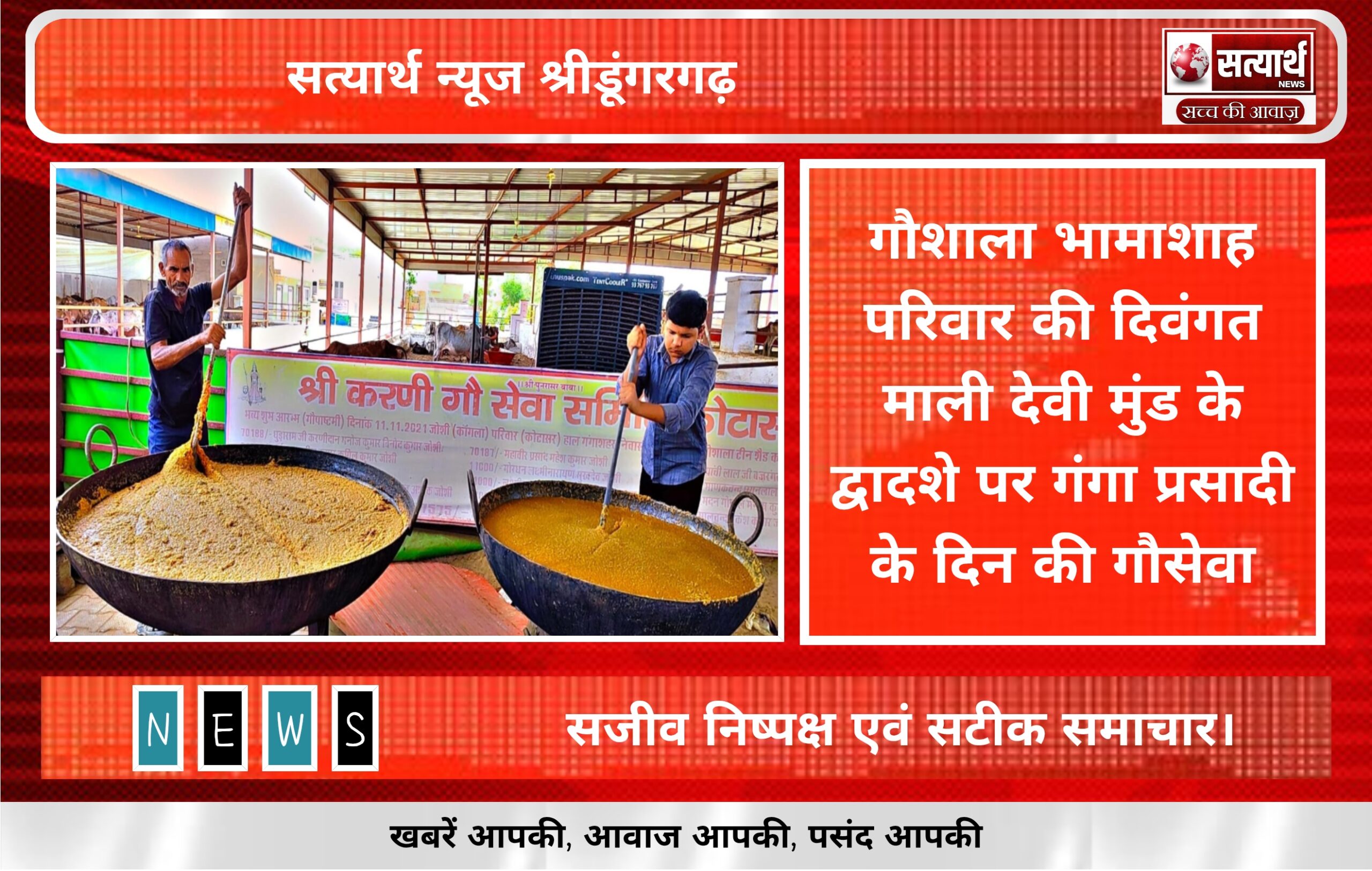 सत्यार्थ न्यूज श्रीडूंगरगढ़-सवांददाता मीडिया प्रभारी गौशाला भामाशाह परिवार की दिवंगत माली देवी मुंड धर्मपत्नी पूर्व प्रधान बीकानेर पंचायत समिति तुलसीराम…