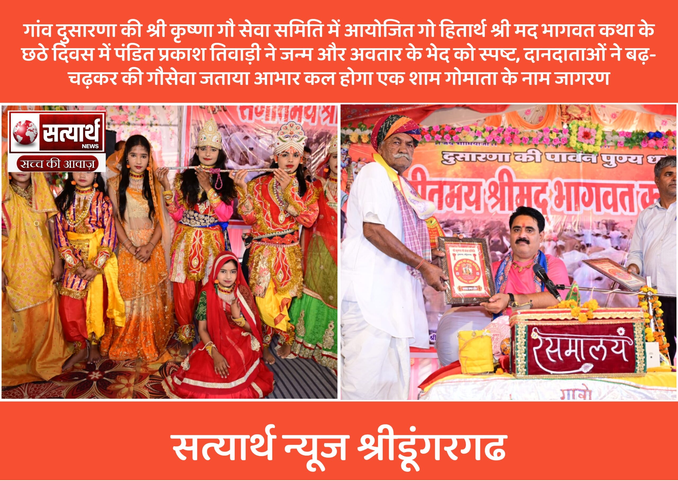 सत्यार्थ न्यूज श्रीडूंगरगढ़- सवांददाता ब्यूरो चीफ गांव दुसारणा की श्री कृष्णा गौ सेवा समिति में आयोजित गो हितार्थ श्री मद…