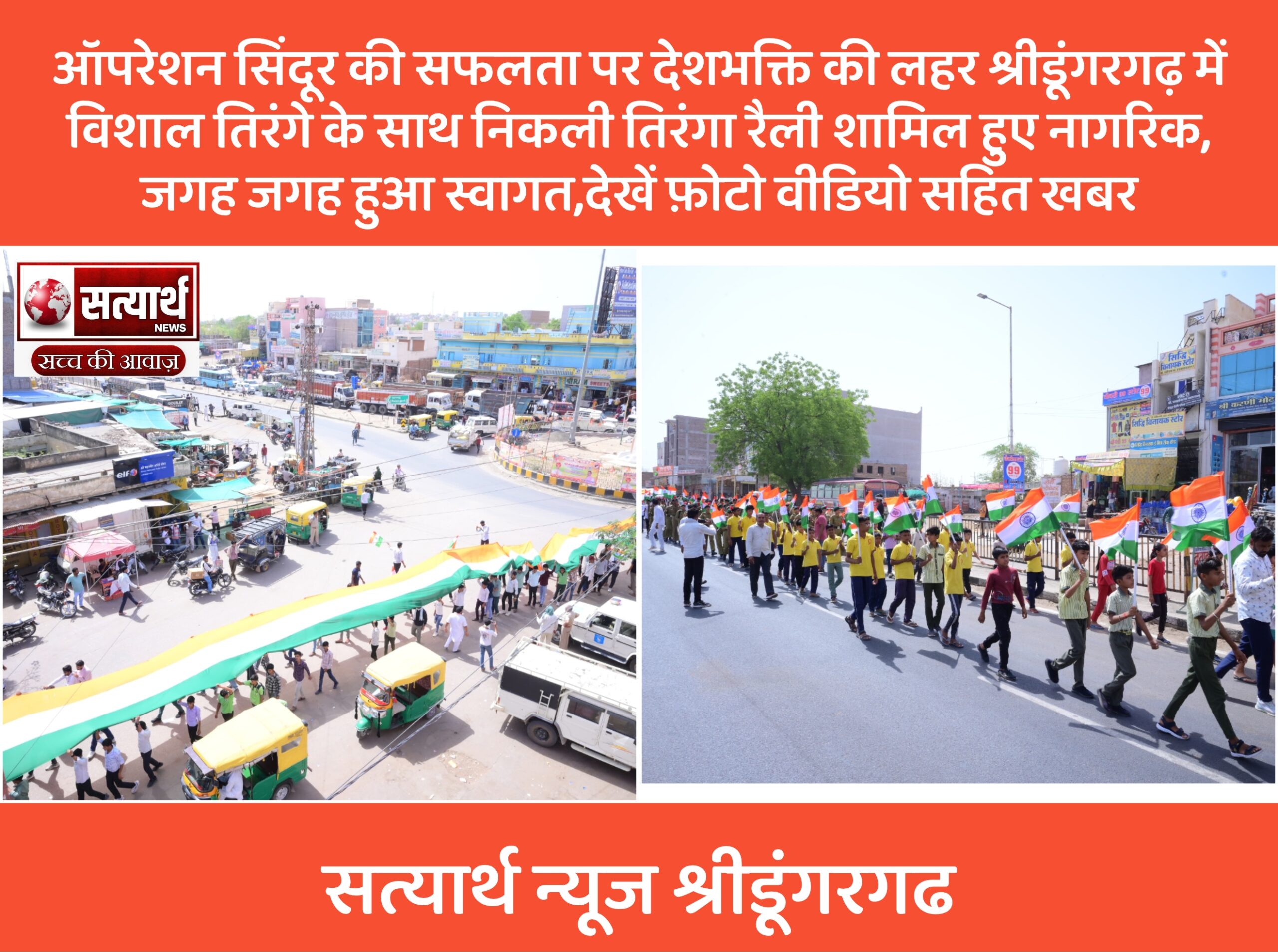 सत्यार्थ न्यूज श्रीडूंगरगढ-सवांददाता ब्यूरो चीफ ऑपरेशन सिंदूर की सफलता के उपलक्ष्य में देशभर में तिरंगा यात्राएं निकाली जा रही हैं।…