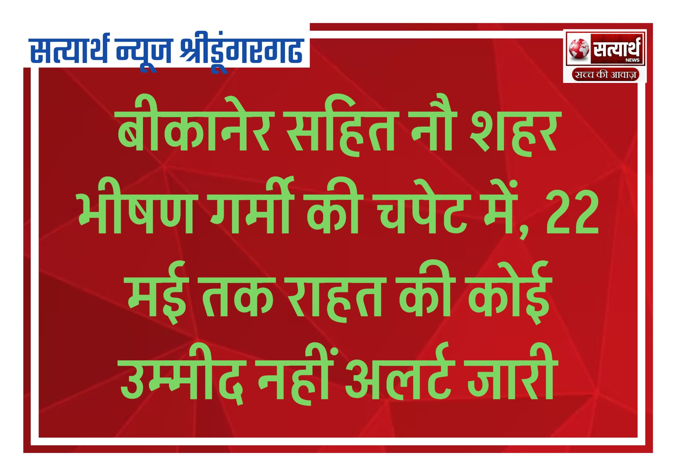 सत्यार्थ न्यूज श्रीडूंगरगढ़- सवांददाता मीडिया प्रभारी जयपुर सहित राजस्थान के नौ शहर लू की चपेट में हैं। इसमें पिलानी (झुंझुनूं),…