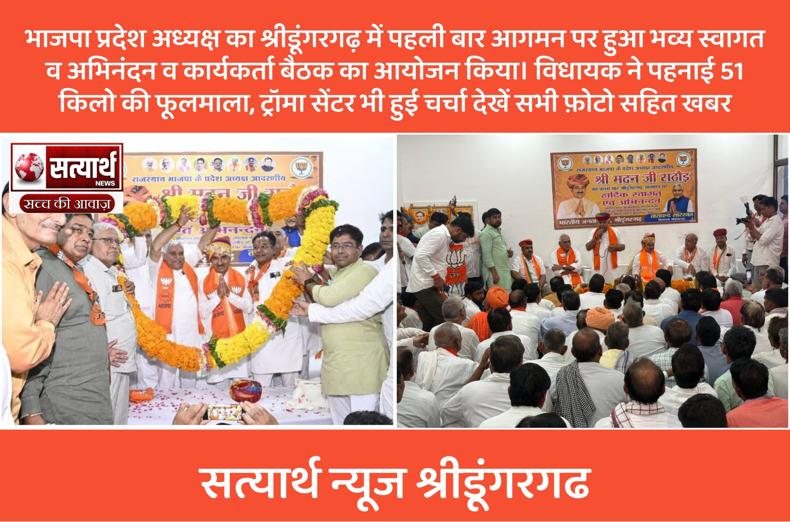 सत्यार्थ न्यूज श्रीडूंगरगढ़- सवांददाता ब्यूरो चीफ भाजपा प्रदेशाध्यक्ष मदन राठौड़ के पहली बार श्रीडूंगरगढ़ आगमन पर नगर में जबरदस्त उत्साह…