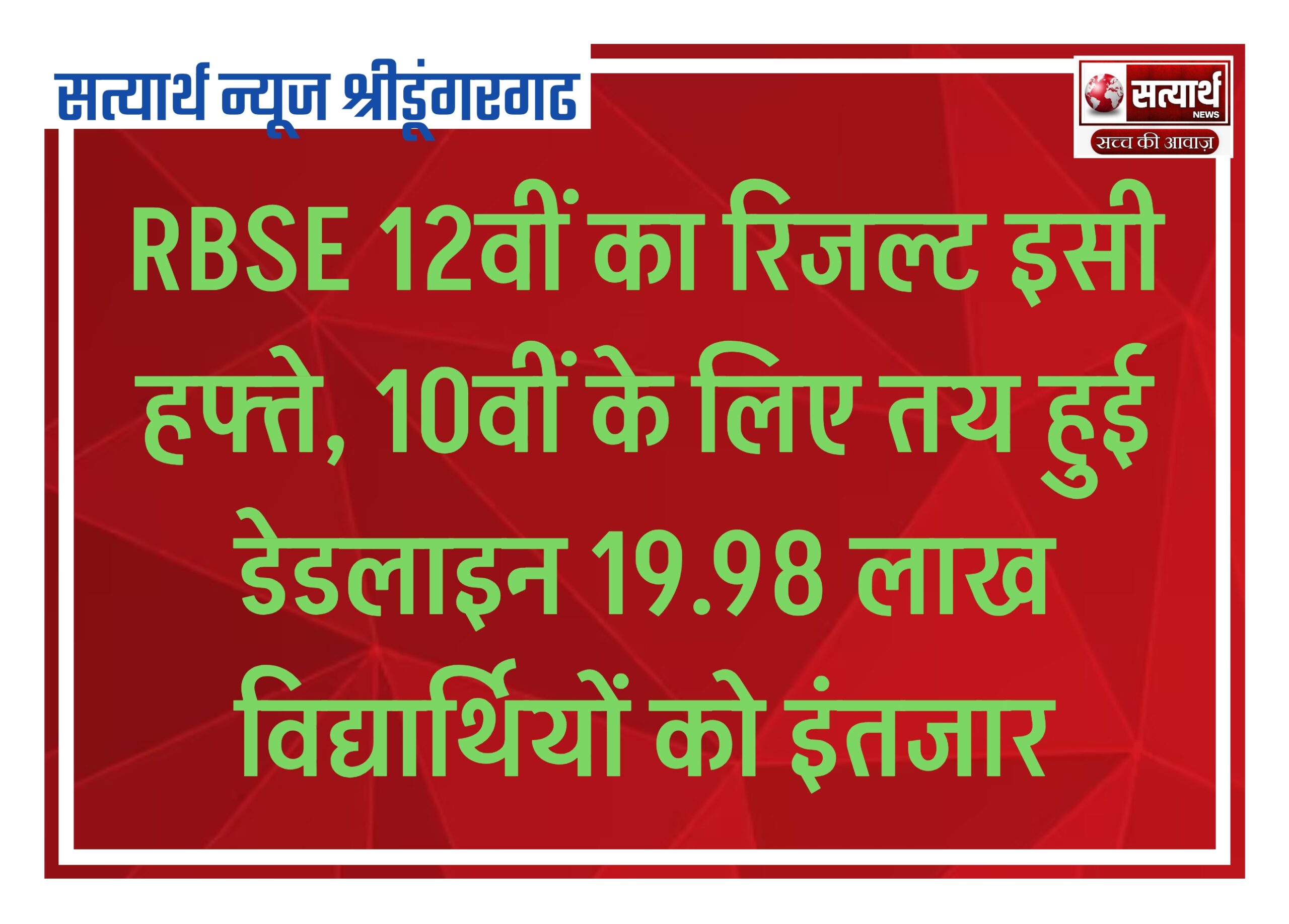 सत्यार्थ न्यूज श्रीडूंगरगढ़- सवांददाता मीडिया प्रभारी राजस्थान माध्यमिक शिक्षा बोर्ड (RBSE) की 12वीं कक्षा का परिणाम 25 से 28 मई…