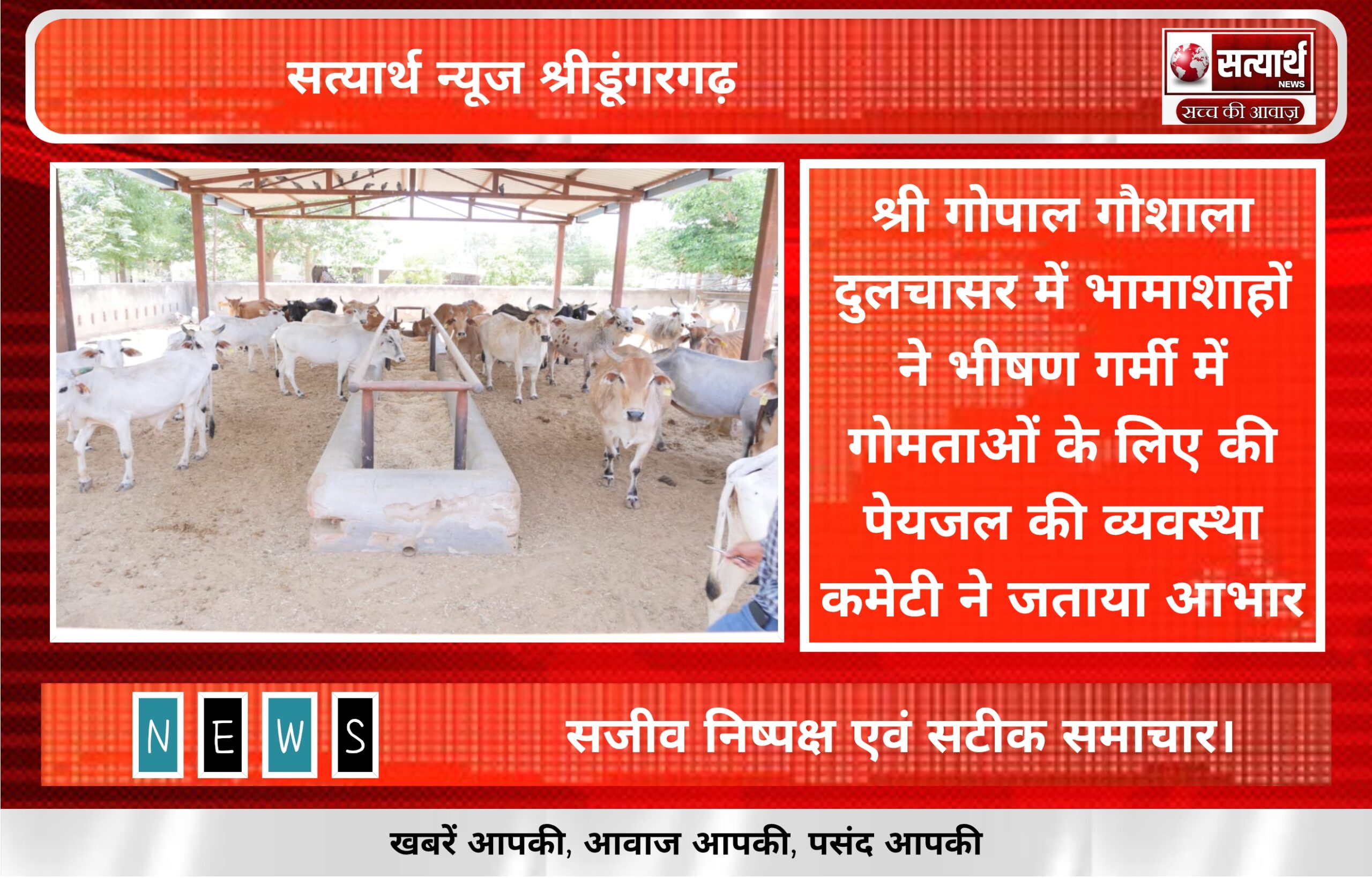 सत्यार्थ न्यूज श्रीडूंगरगढ-सवांददाता ब्यूरो चीफ श्री गोपाल गौशाला दुलचासर में जेष्ठ महीने की भीषण गर्मी को देखते हुए भामाशाह दिवंगत…