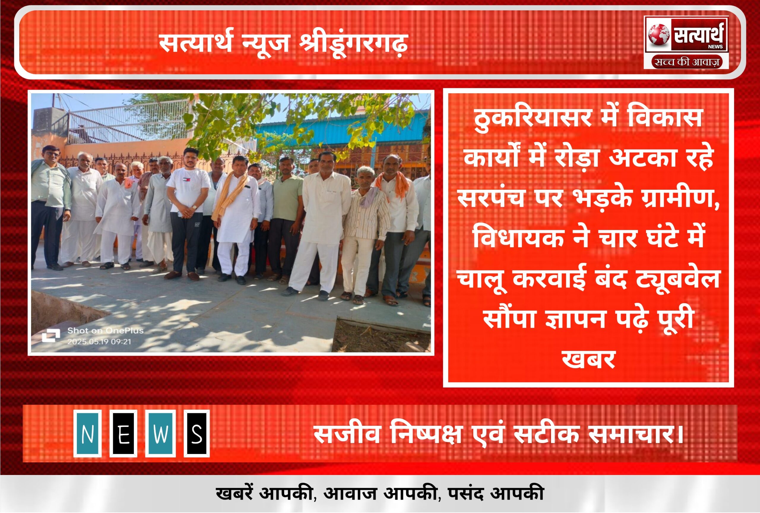 सत्यार्थ न्यूज श्रीडूंगरगढ – सवांददाता ब्यूरो चीफ ठुकरियासर गांव के जागरूक नागरिकों ने हाल ही में पंचायत प्रशासन पर गंभीर…