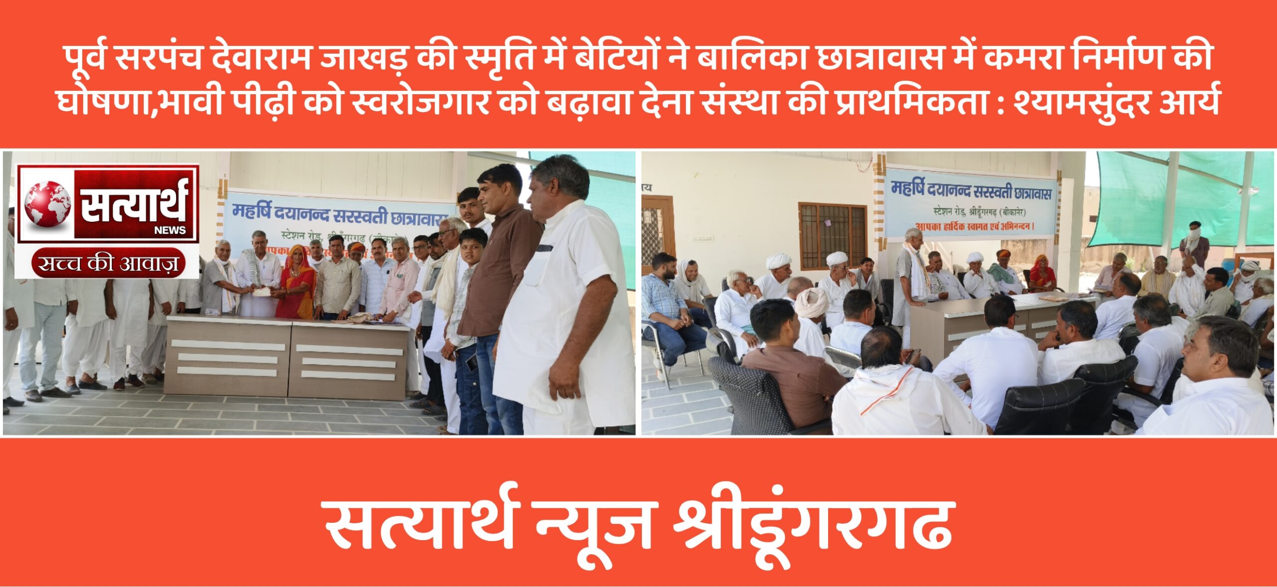 सत्यार्थ न्यूज श्रीडूंगरगढ़-सवांददाता ब्यूरो चीफ महर्षि दयानंद सरस्वती छात्रावास विकास समिति श्रीडूंगरगढ़ की बैठक एडवोकेट श्याम सुन्दर आर्य की अध्यक्षता…