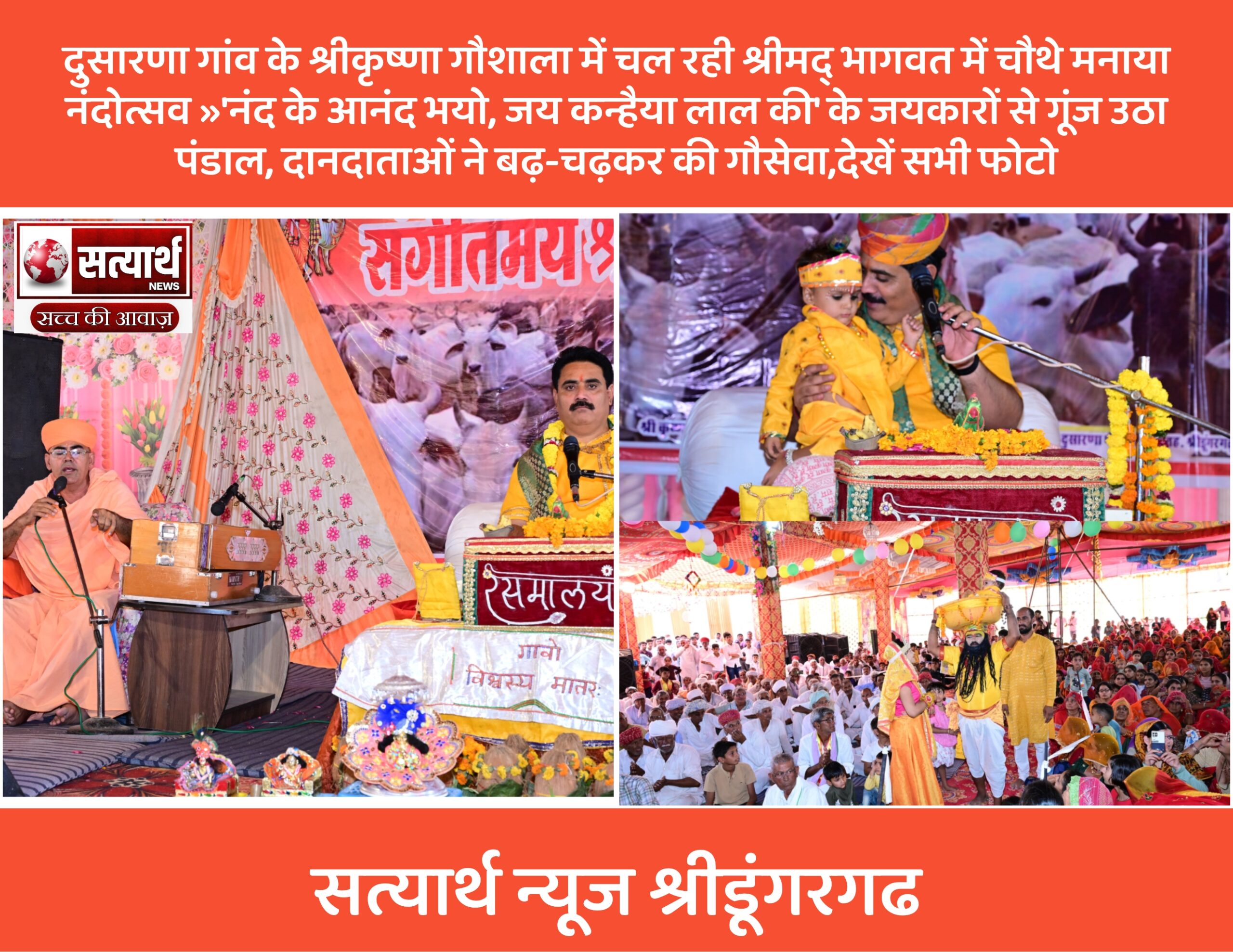 सत्यार्थ न्यूज श्रीडूंगरगढ़- सवांददाता ब्युरो चीफ दुसारणा गांव के श्रीकृष्णा गौशाला में चल रही श्रीमद् भागवत कथा के चौथे दिन…